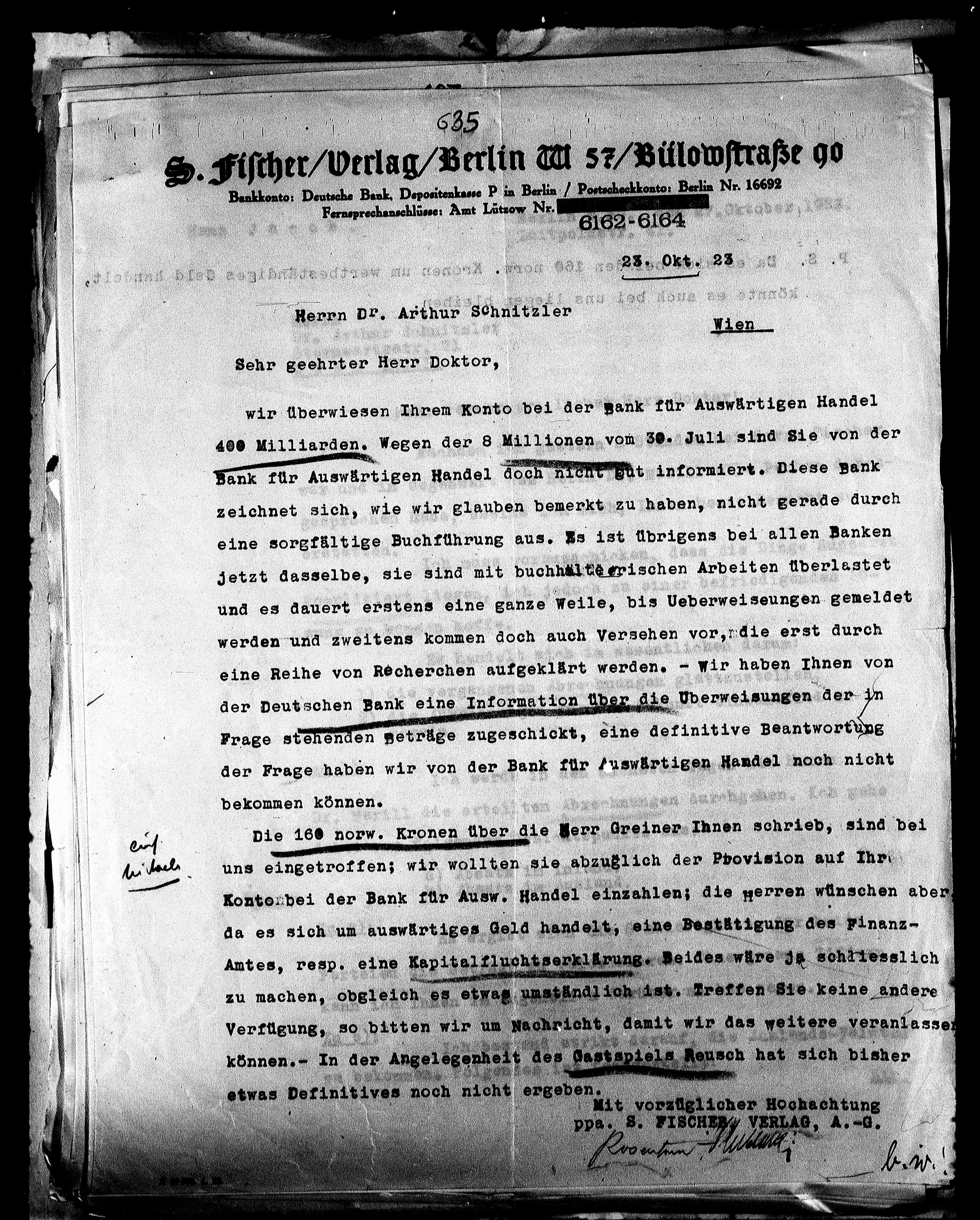S. Fischer/Verlag/Berlin W. 57/Bülowstraße 90.