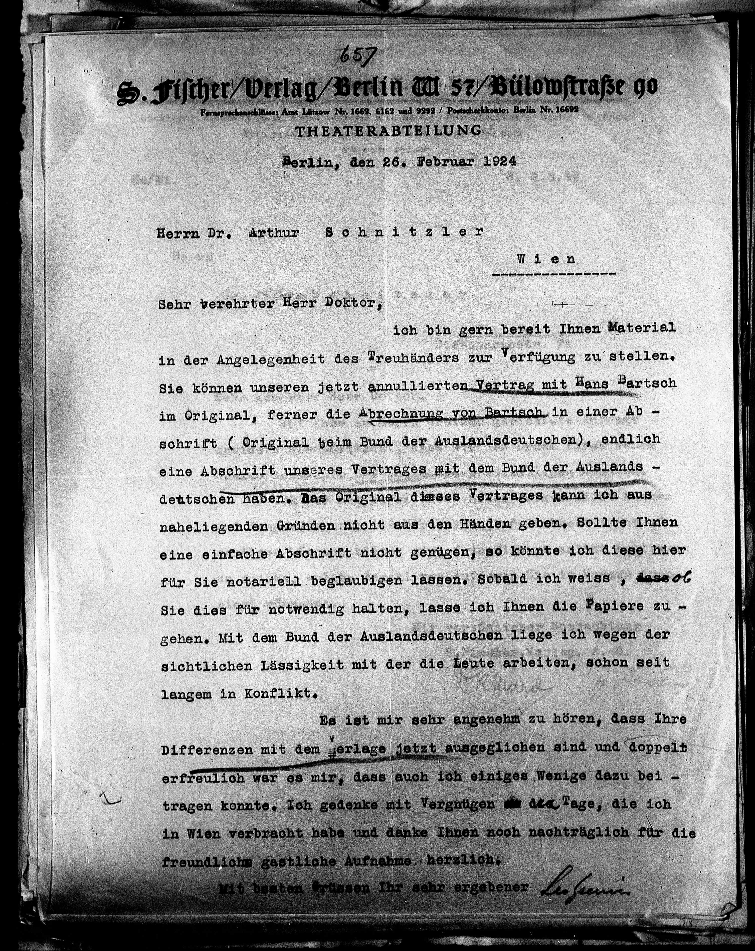 S. Fischer/Verlag/Berlin W. 57/Bülowstraße 9o.