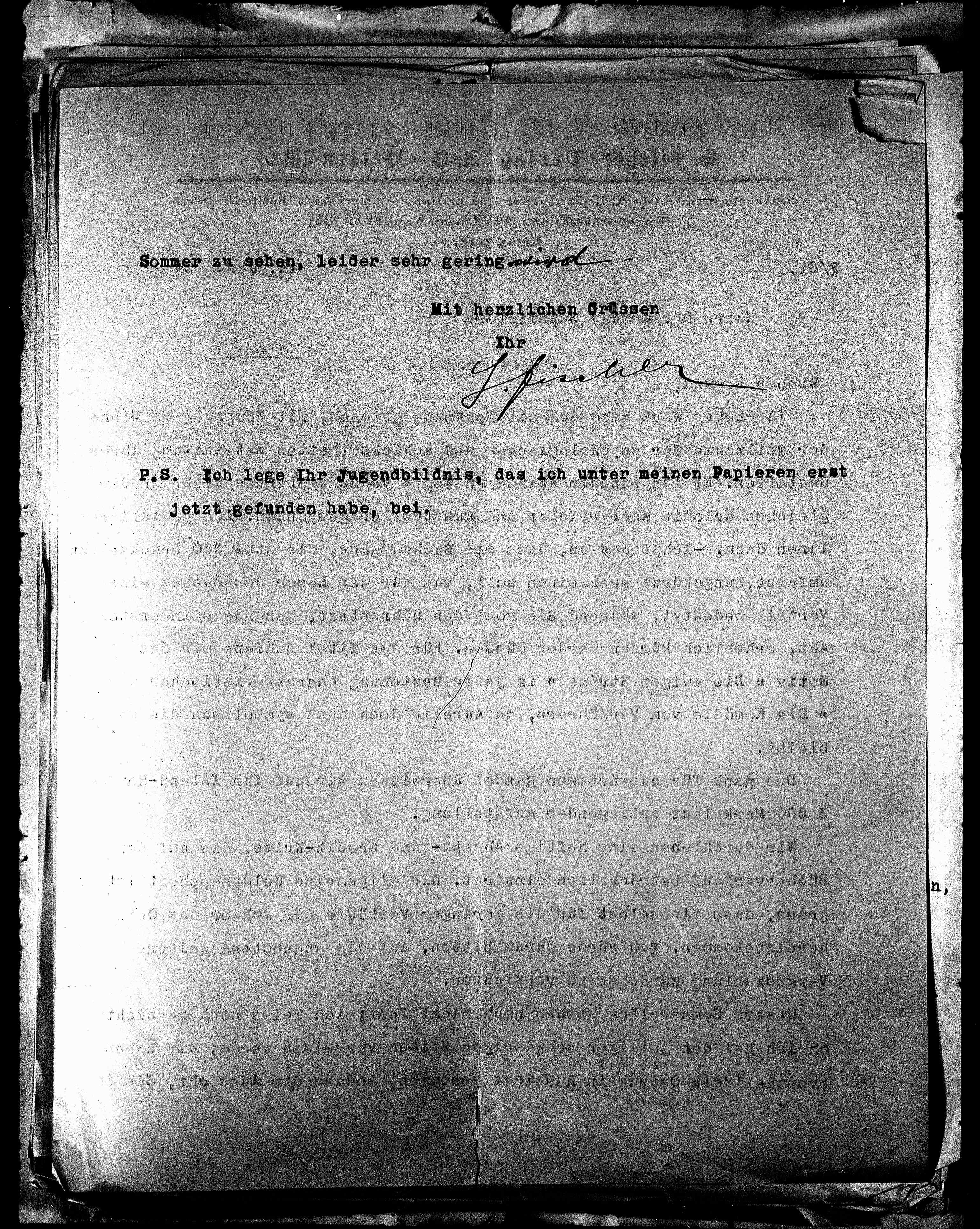 P.S. Ich lege Ihr Jugendbildnis