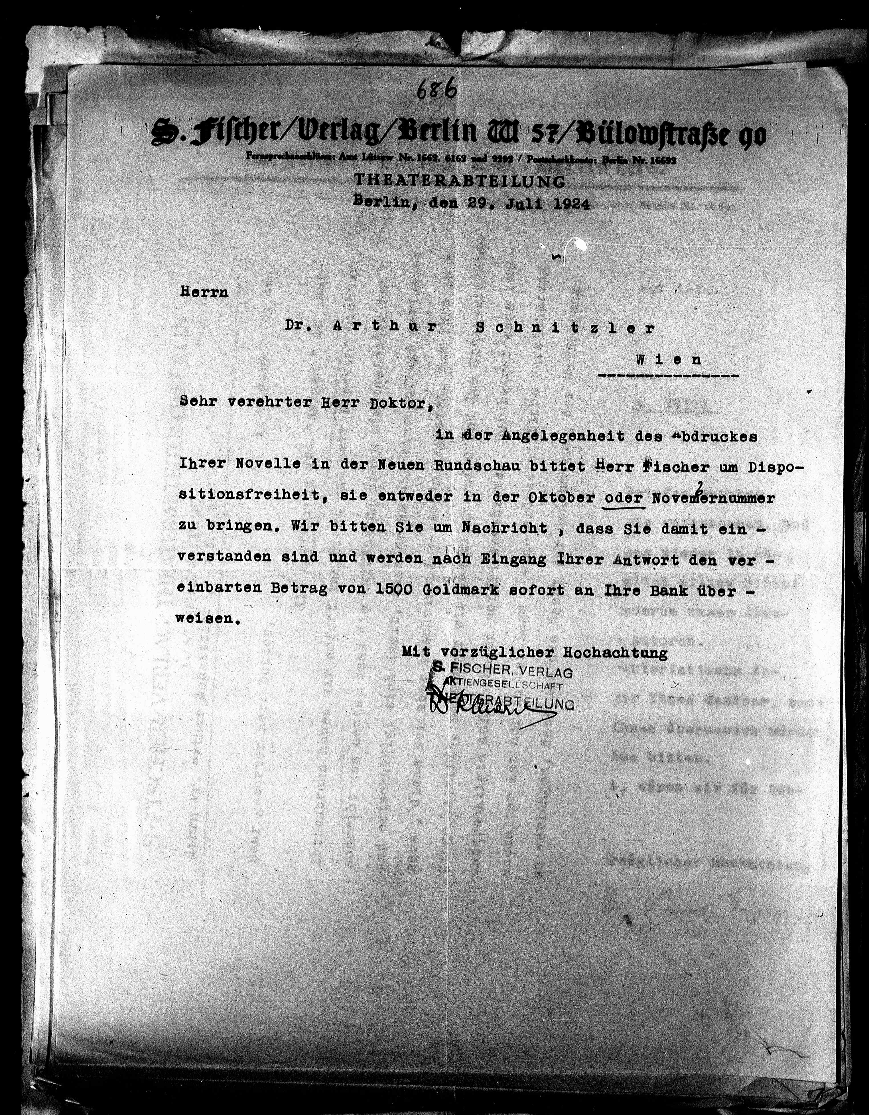 einbarten Betrag von 1500 Goldmark sofort an Ihre Bank über