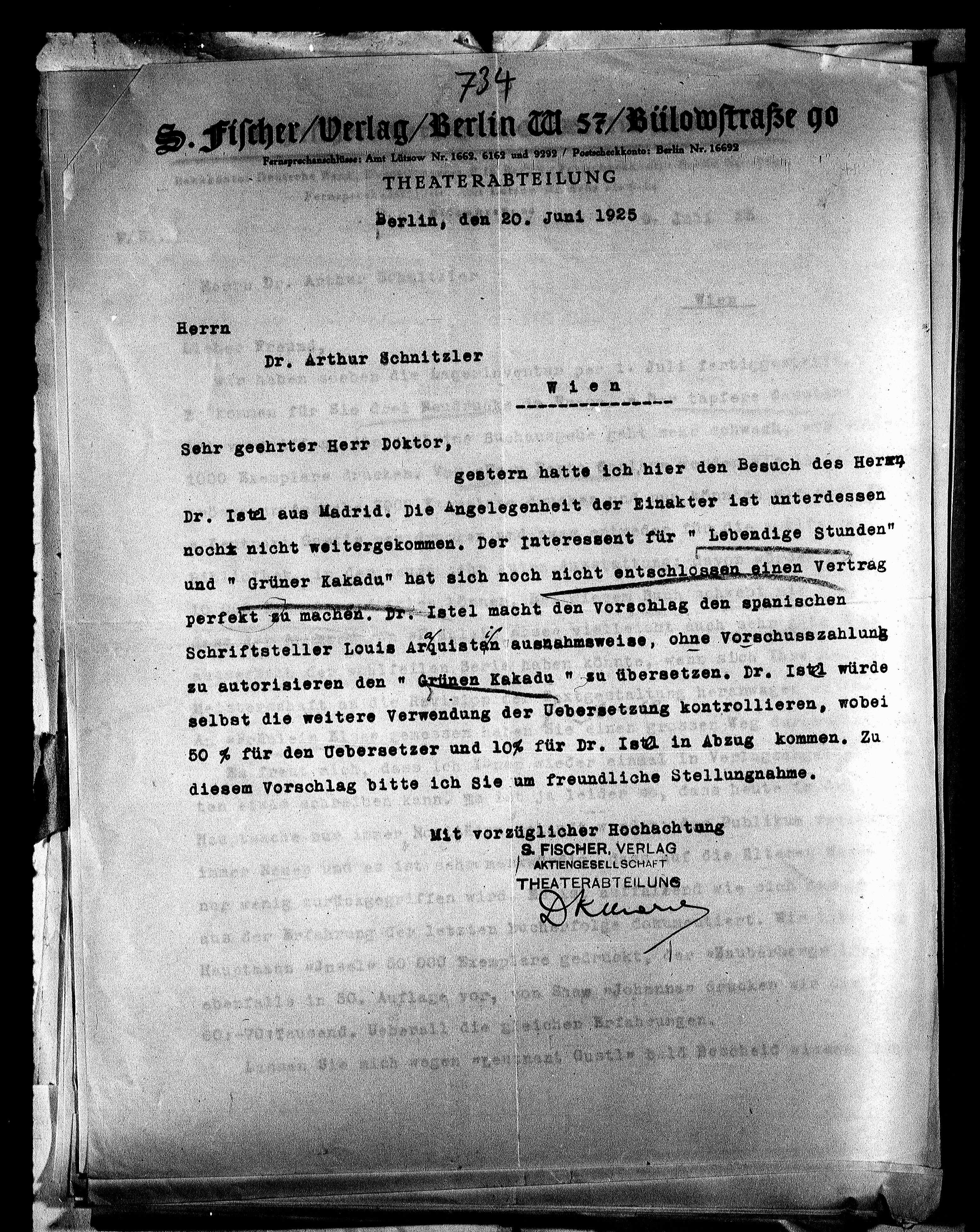 50 % für den Uebersetzer und 10% für Dr. Istl in Abzug kommen. Zu