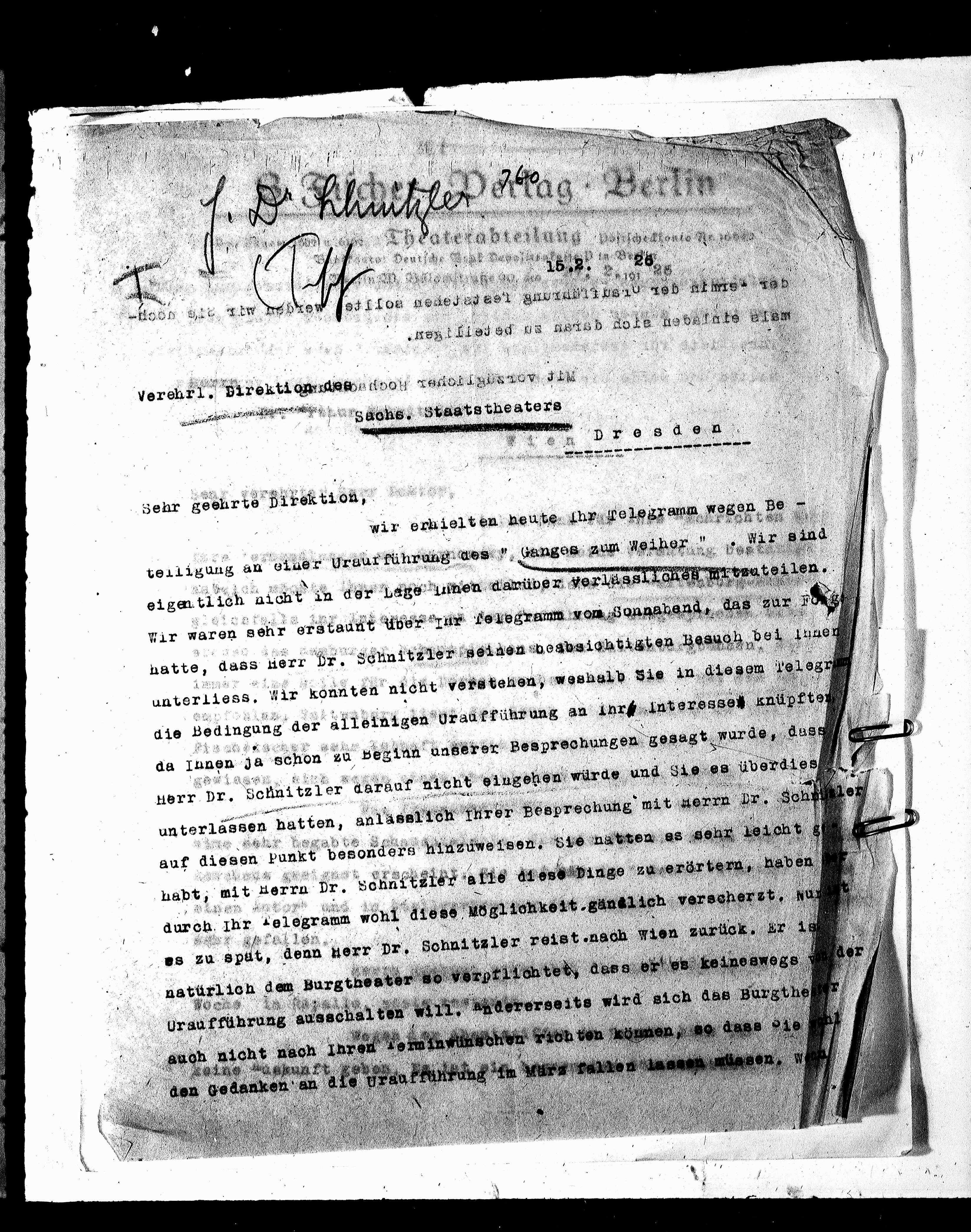 hatte, dass Herr Dr. Schnitzler seinen beabsichtigten Besuch bei Innen
