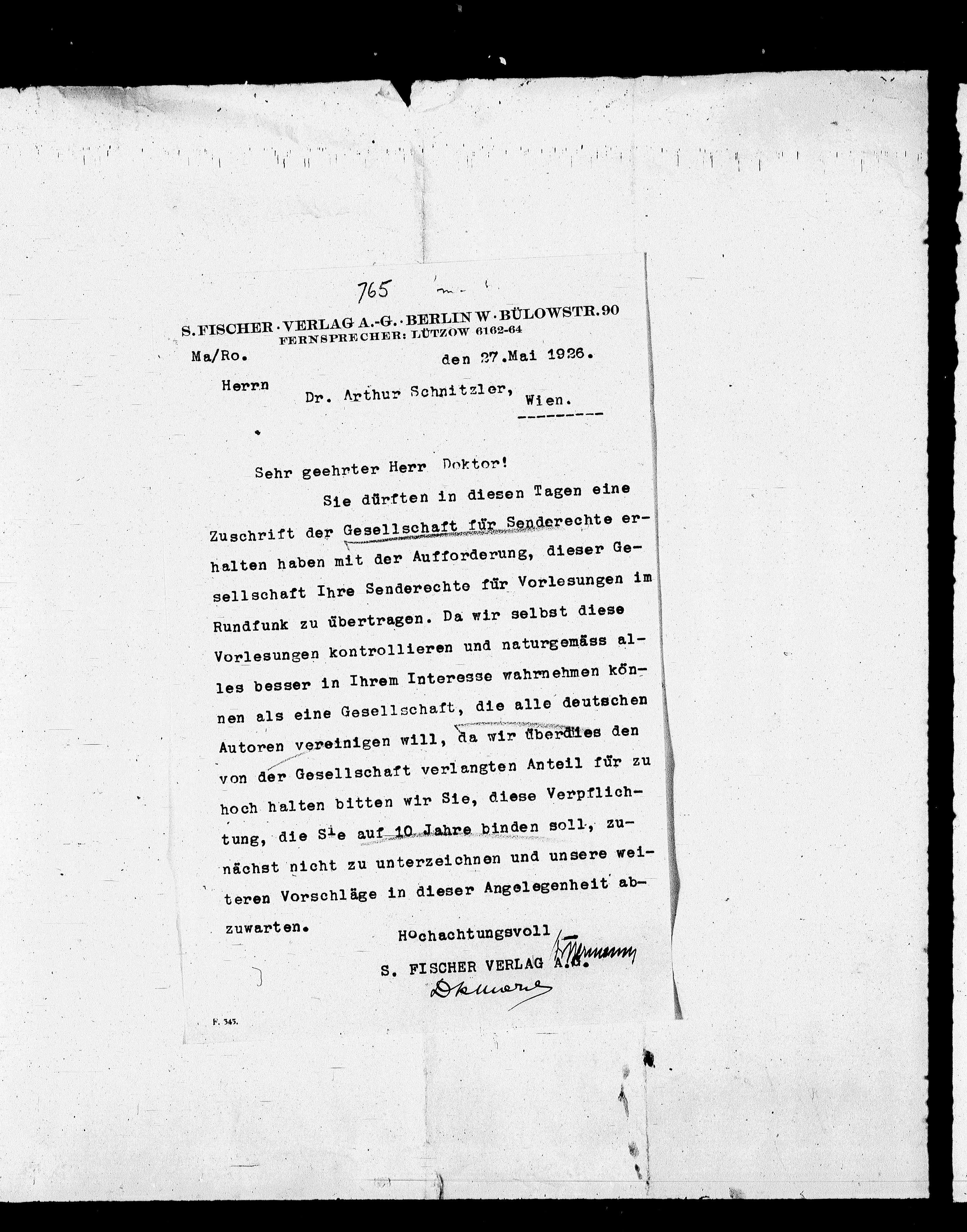 S.FISCHER.VERLAG A.-G. BERLIN W BÜLowSTR. 90
