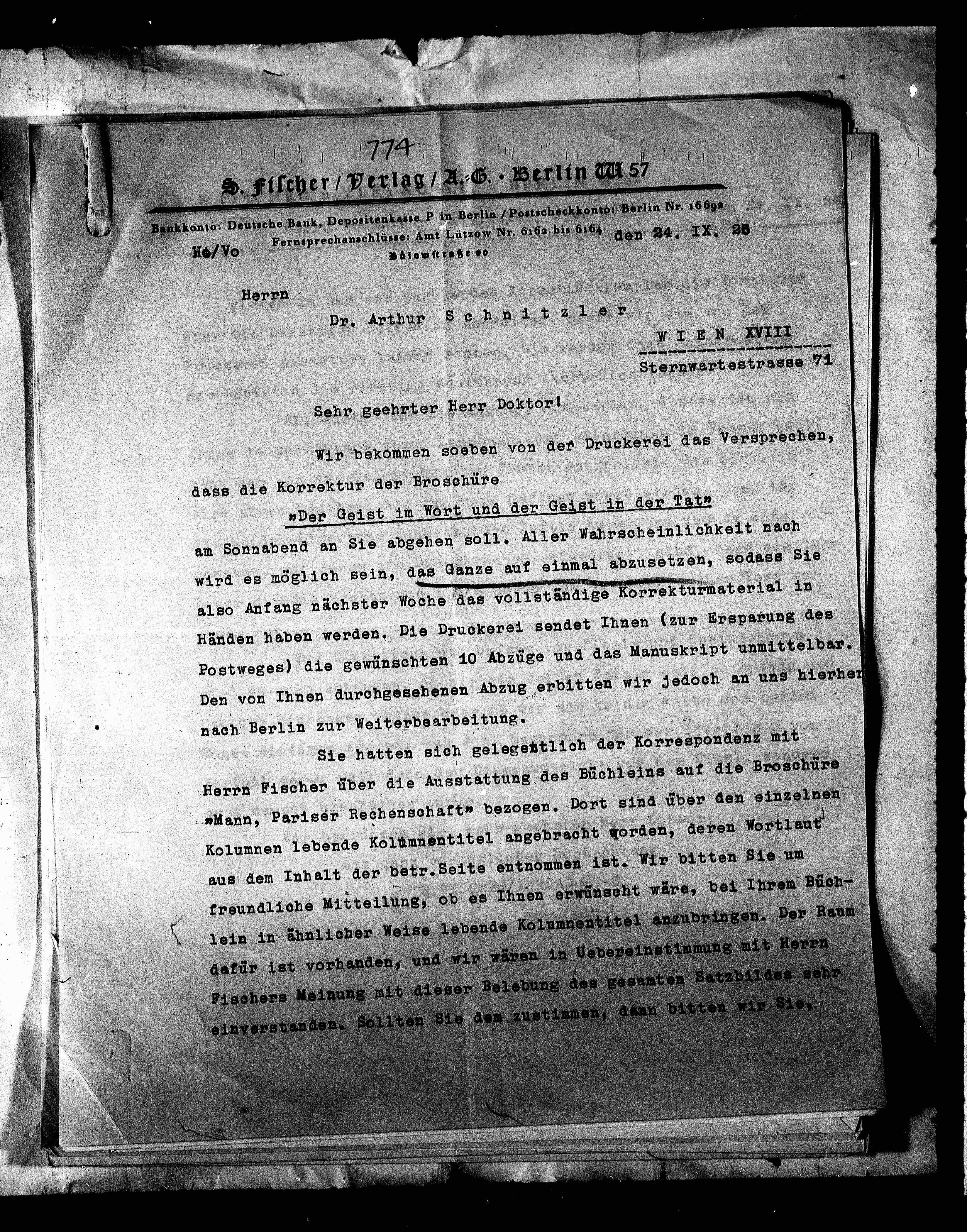 kanto: Deutsche Bank, Depositenkasse P in Berlin / Postscheckkonto: Berlin Nr. 1669.