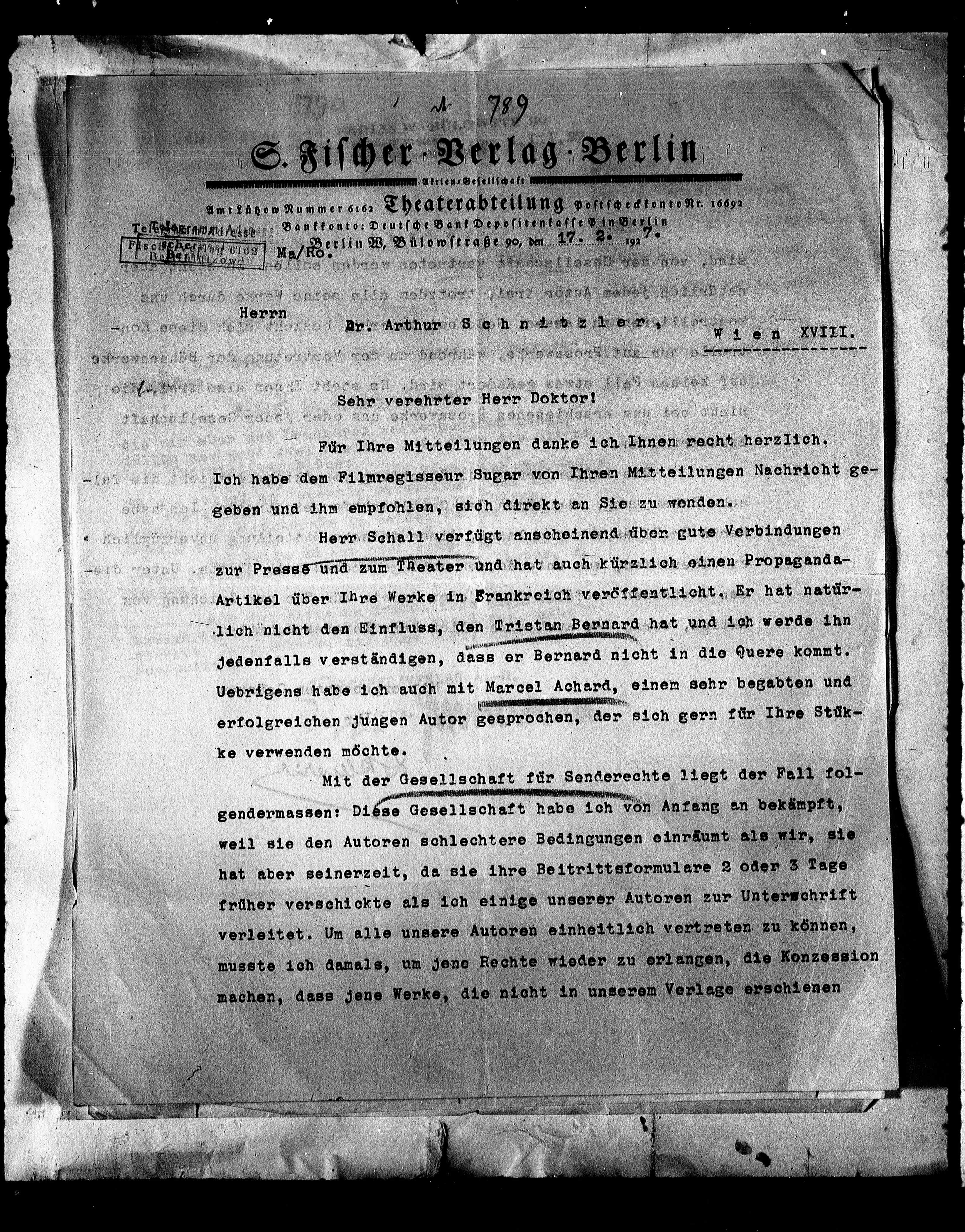 Berlin W, Bülowstraße 90, den 17. 2. 192
