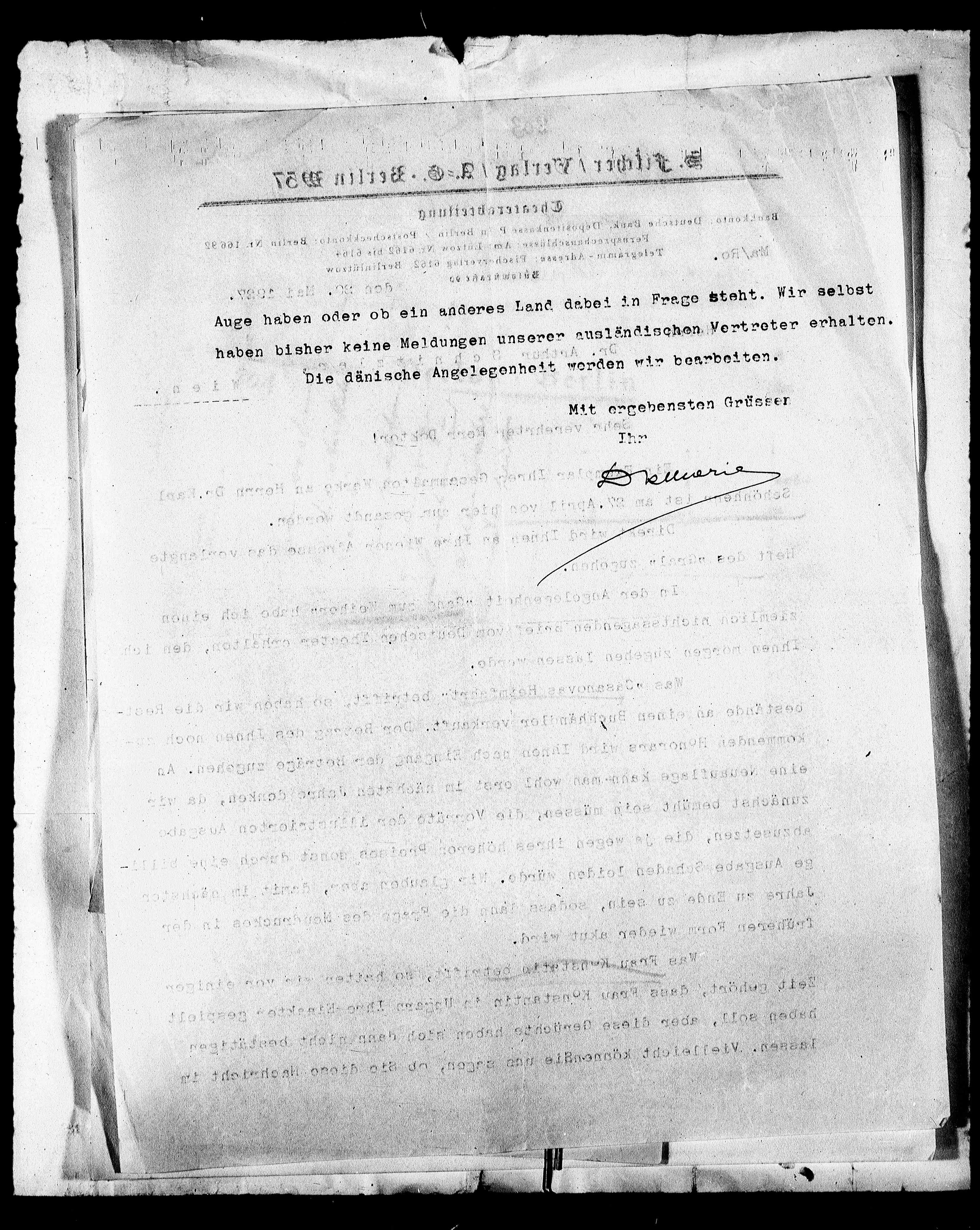 Die dänische Angelegenheit worden wir bearbeiten.