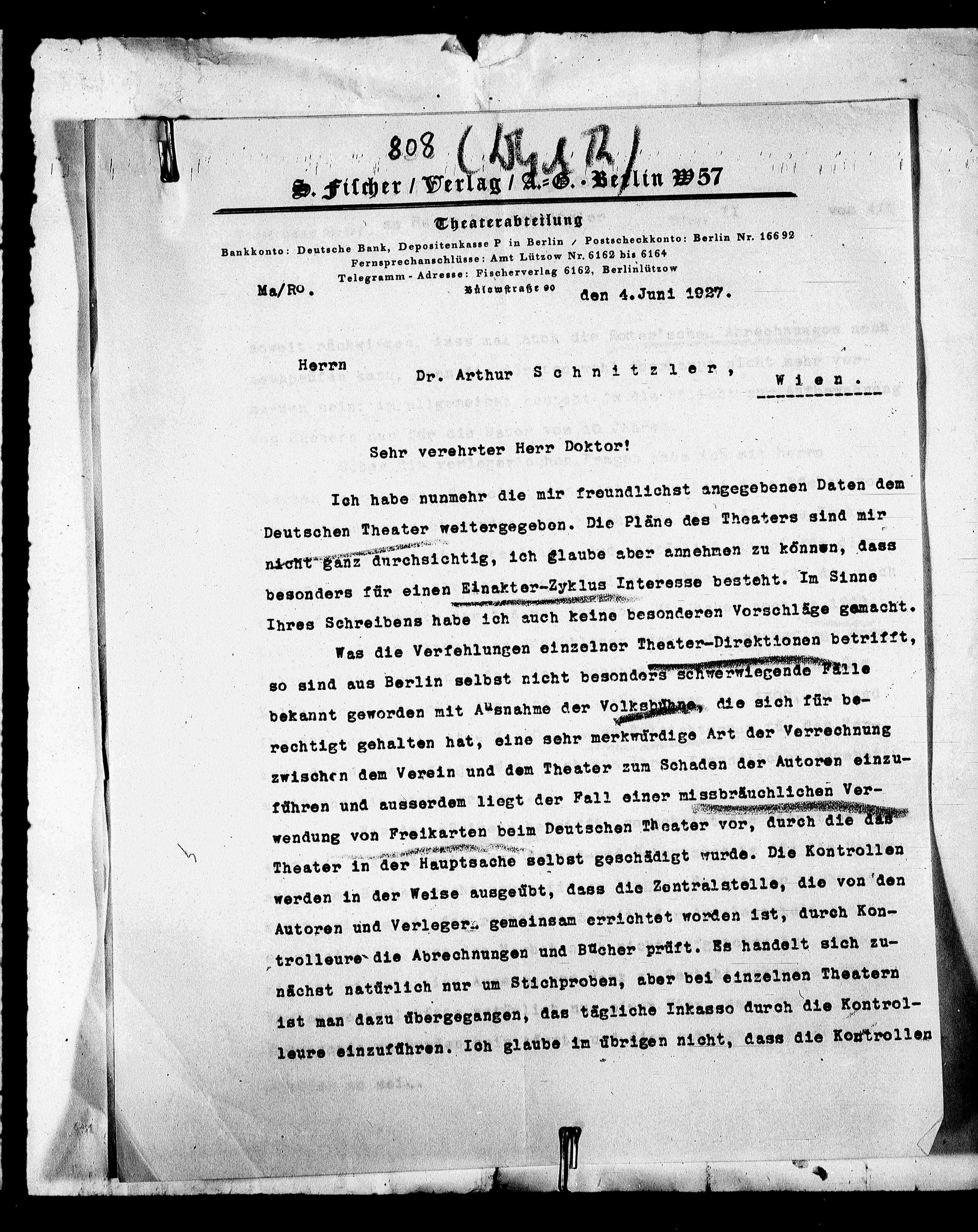 Bankkonto: Deutsche Bank, Depositenkasse P in Berlin / Postscheckkonto; Berlin Nr. 16692