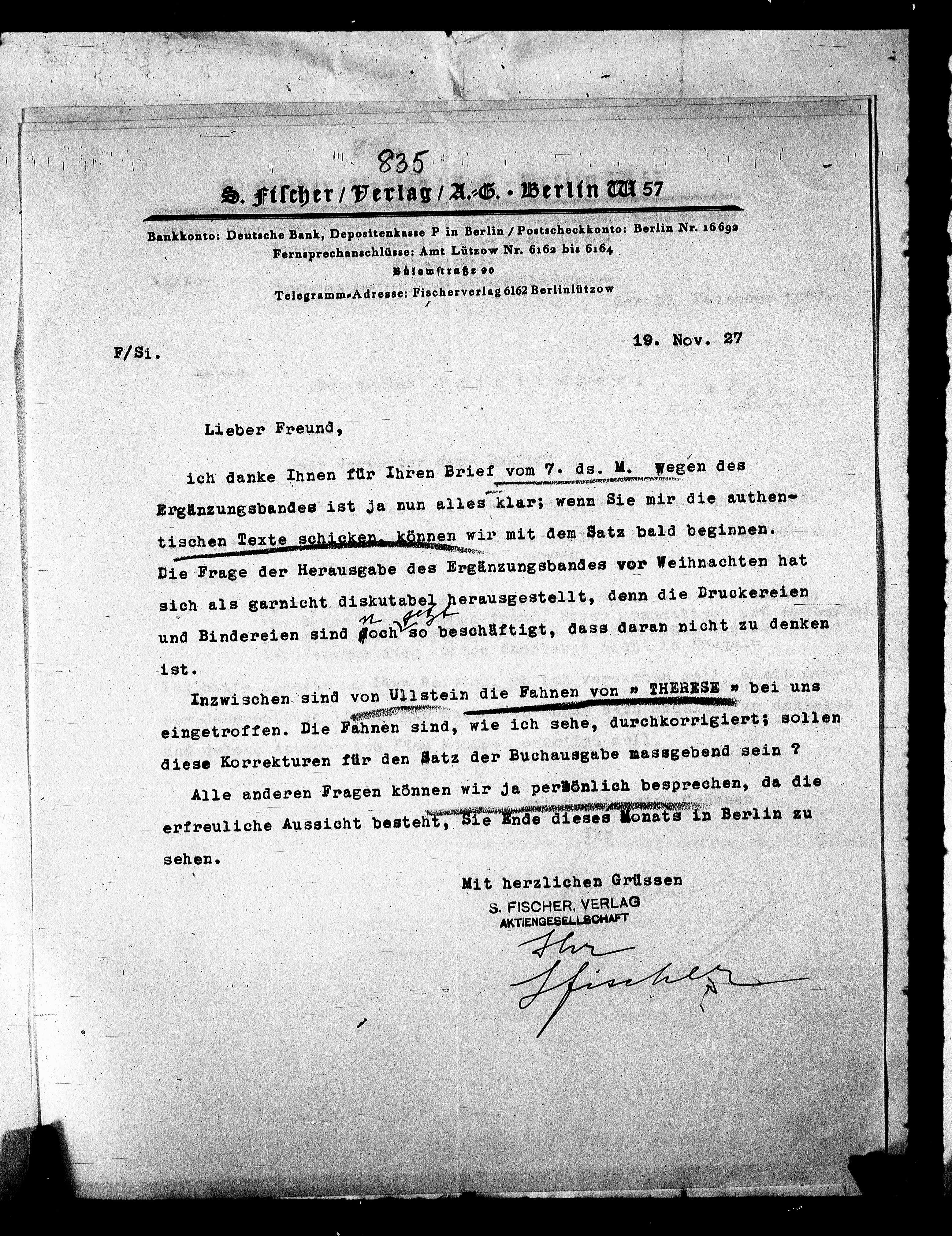 S. Fischer/Verlag / A.=G. Berlin M 57.