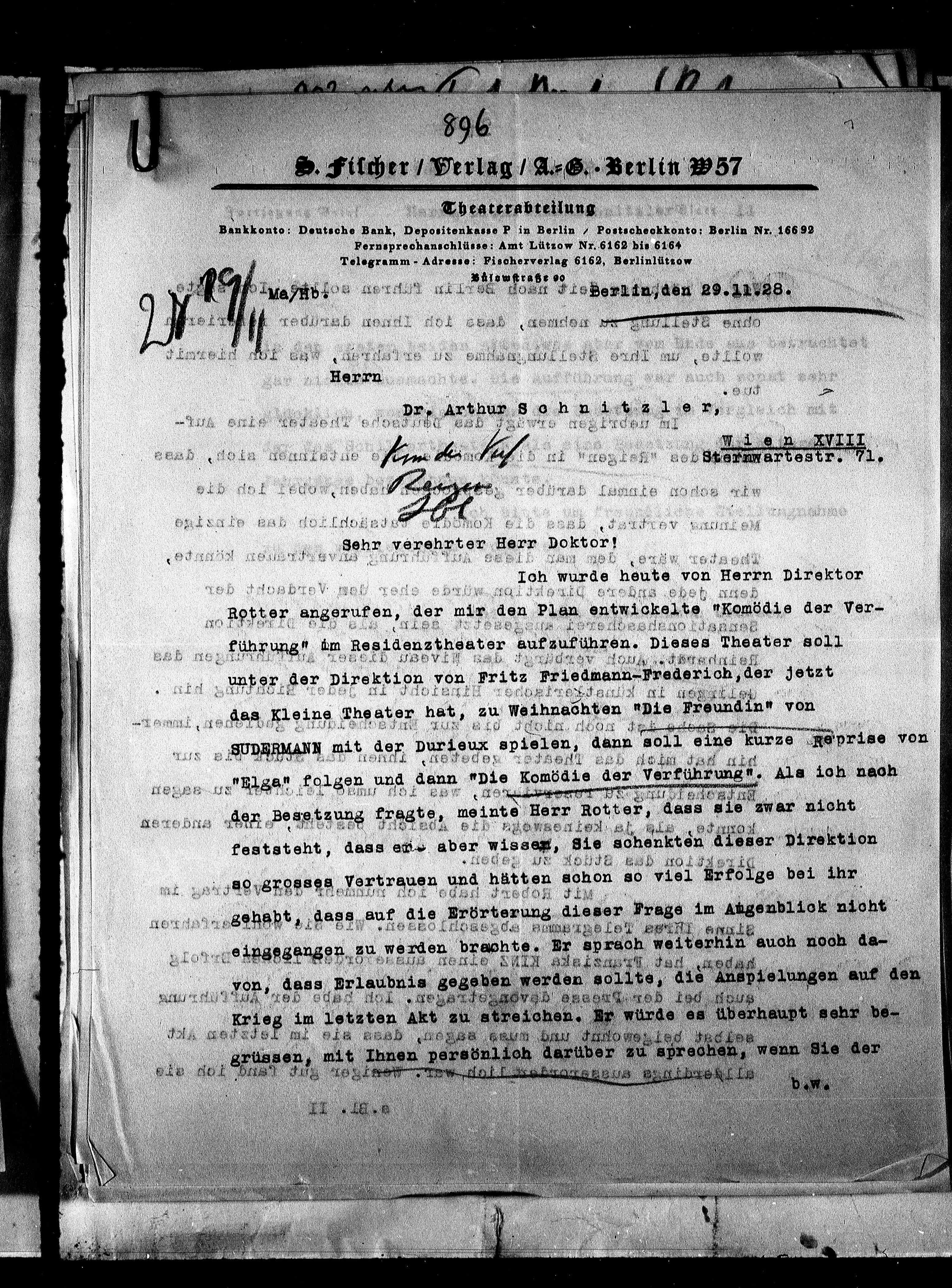 Telegramm - Adresse: Fischerverlag 6162, Berlinlützow