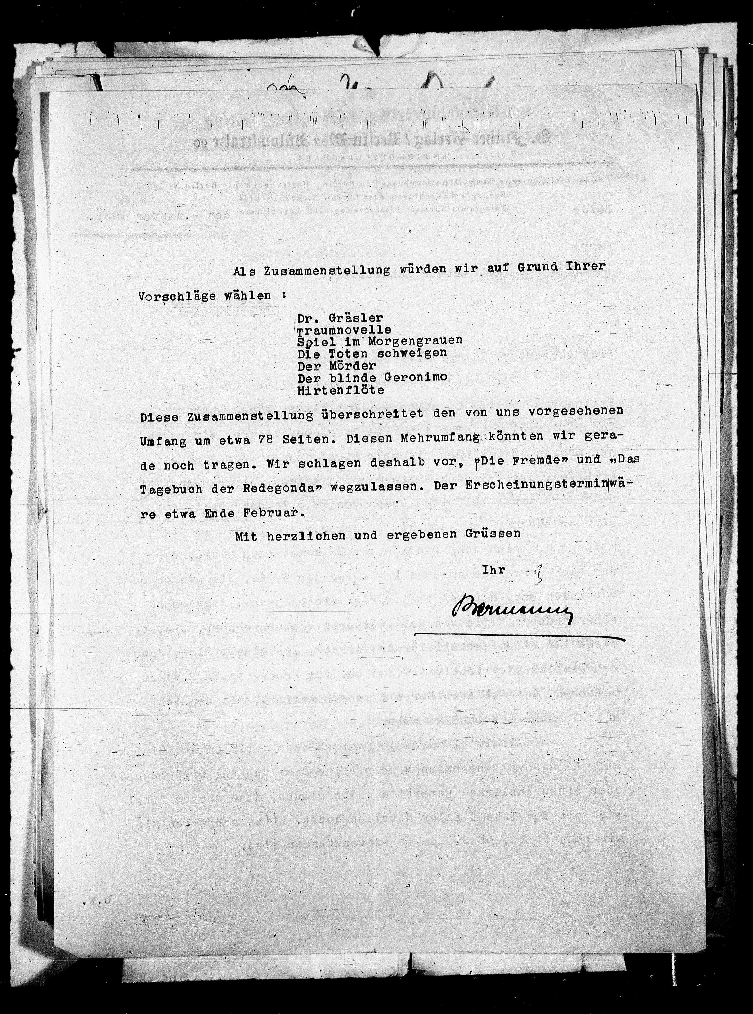 Tagebuch der Redegonda" wegzulassen. Der Erscheinungsterminwä-