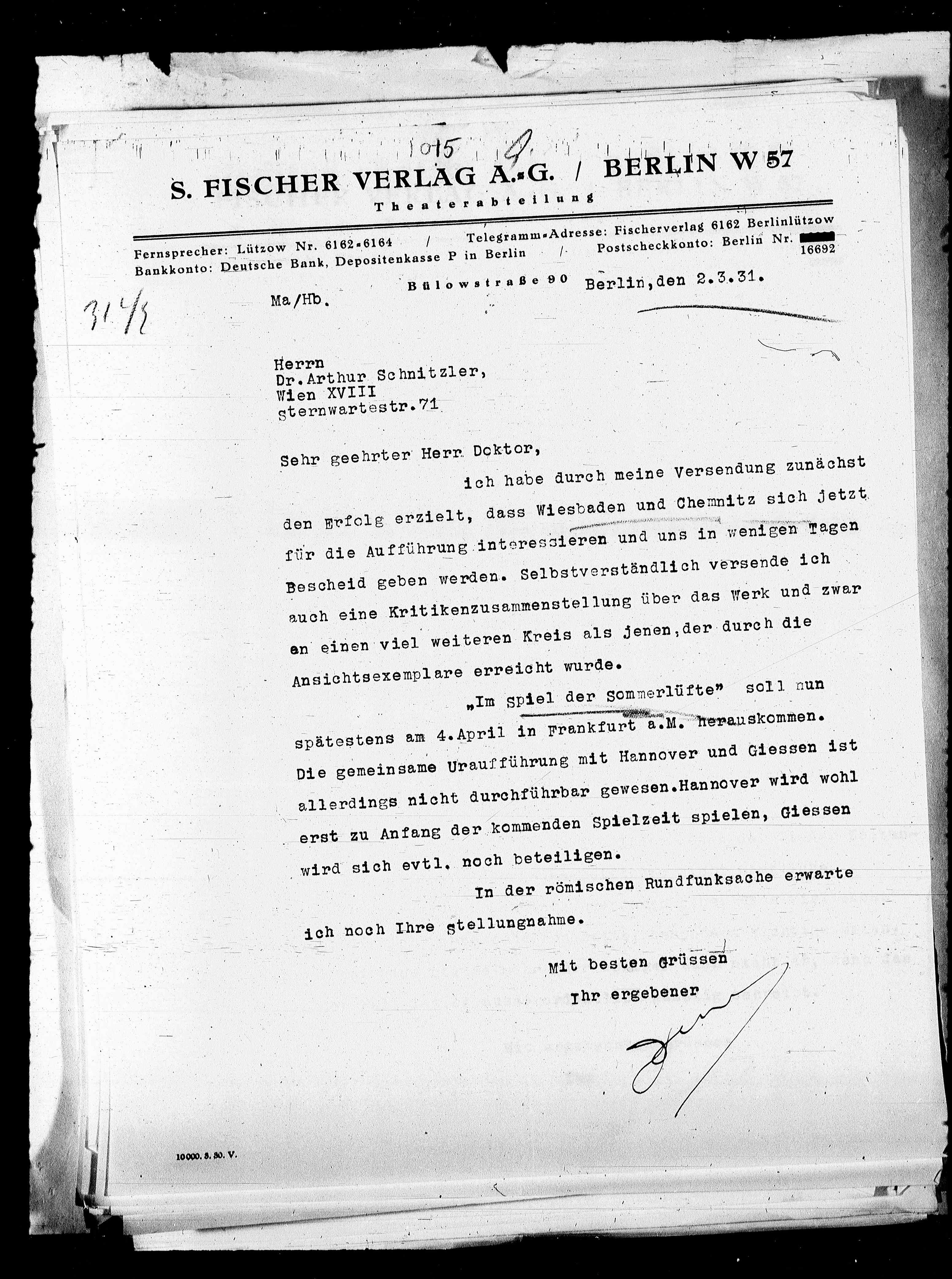 Bülowstraße 90 Berlin, den 2.3.31.