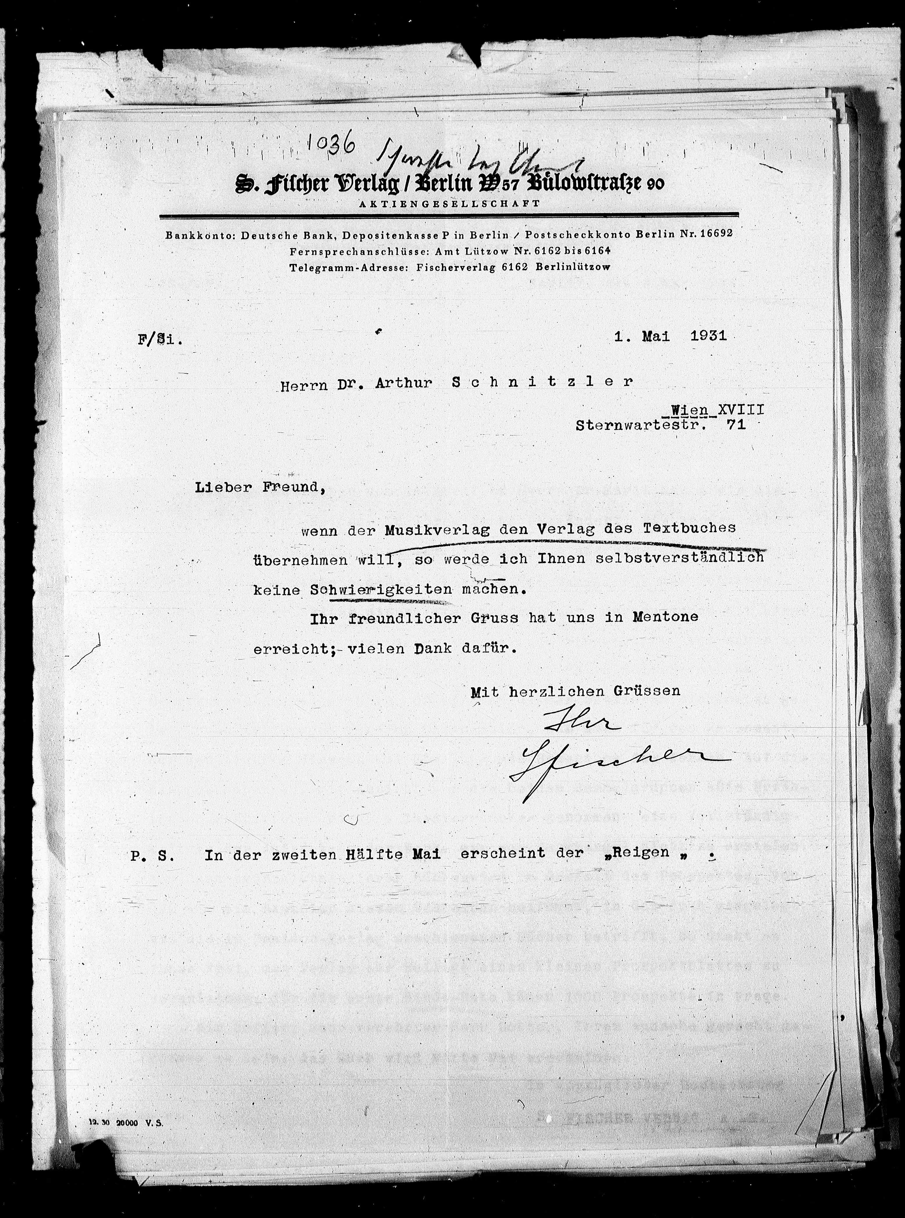 Telegramm-Adresse: Fischerverlag 6162 Berlinlützow