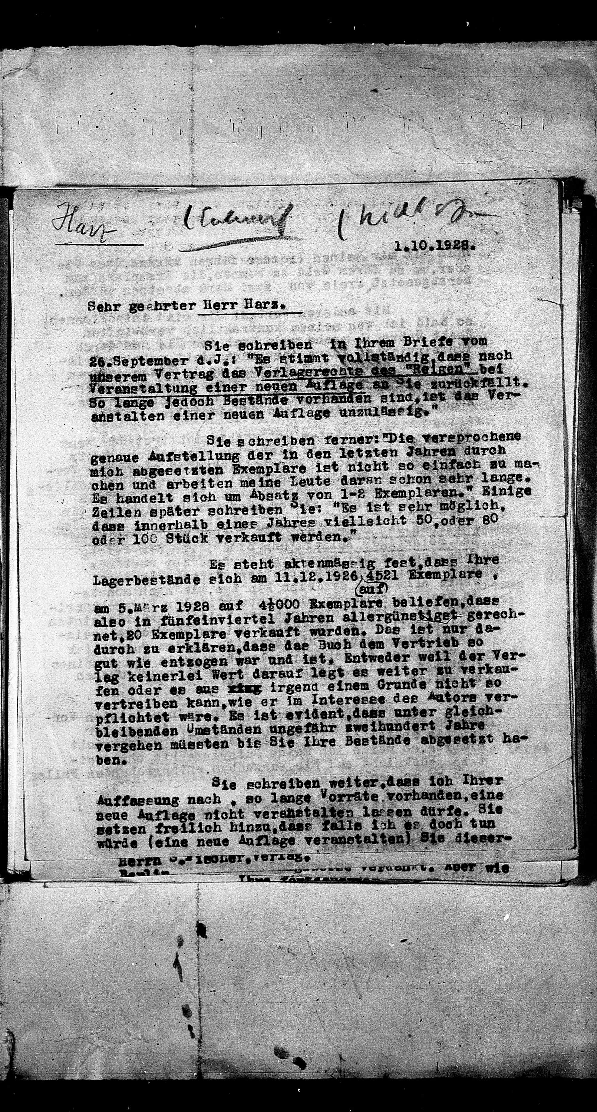 Lagerbestände sich am 11.12.1926 4521 Exempla-