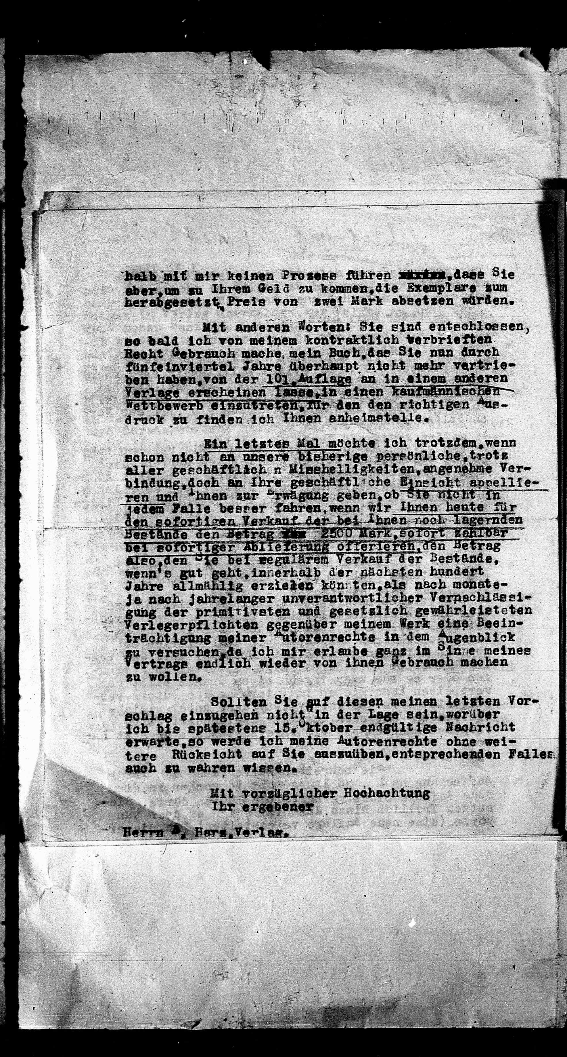 2500 Mark, sofort zahlbar