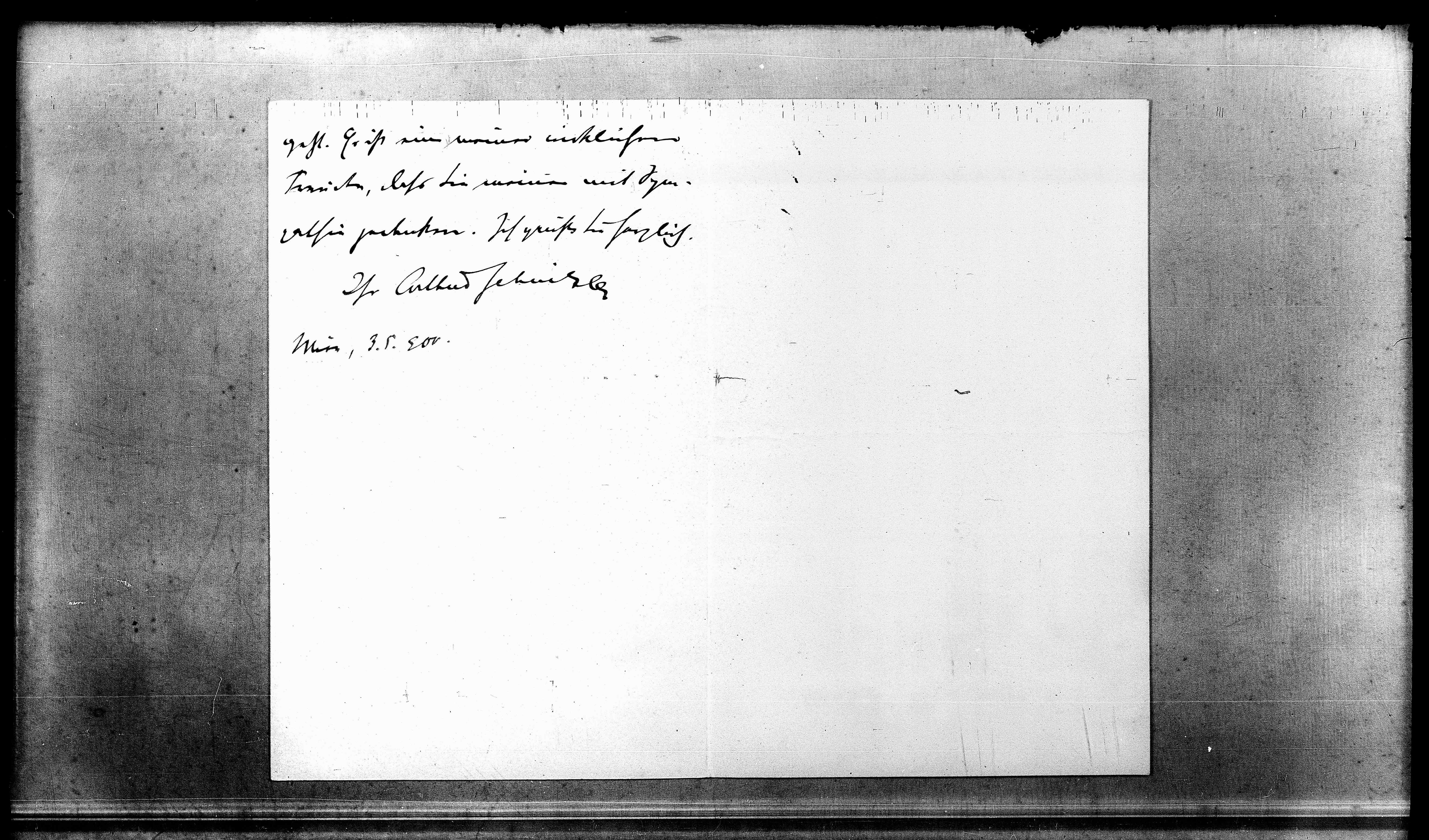 Brandes Arkiv: Brandes Arkiv – Schnitzler an Brandes (umgekehrt chronologisch), Seite 100, in: Mikroverfilmung des Cambridger Nachlasses. Hg. Peter Andorfer, Martin Anton Müller und Laura Untner, Austrian Centre for Digital Humanities and Cultural Heritage, Wien 2024, https://schnitzler-mikrofilme.acdh.oeaw.ac.at/1416758_0100.html