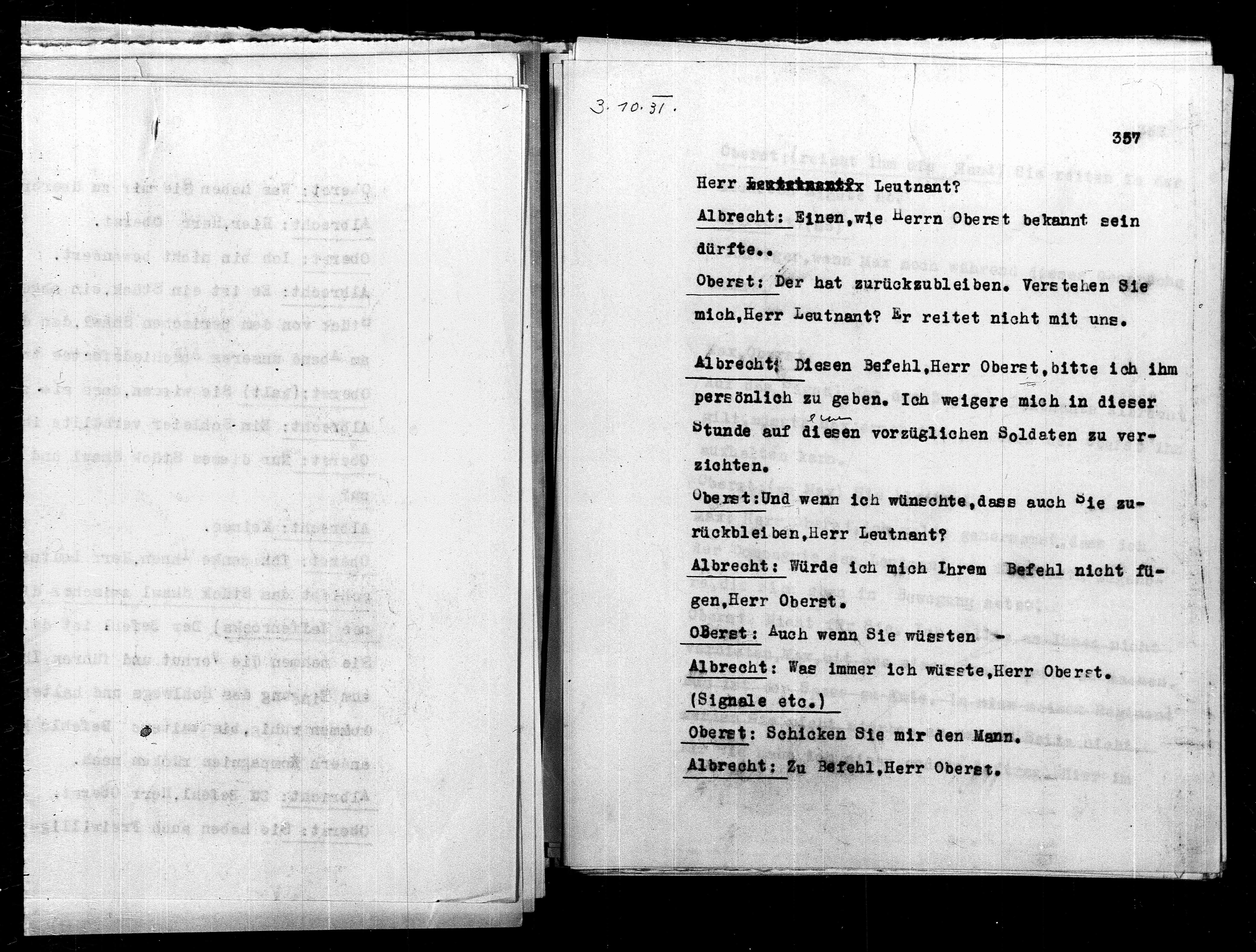Albrecht: Zu Befehl, Herr Oberst,