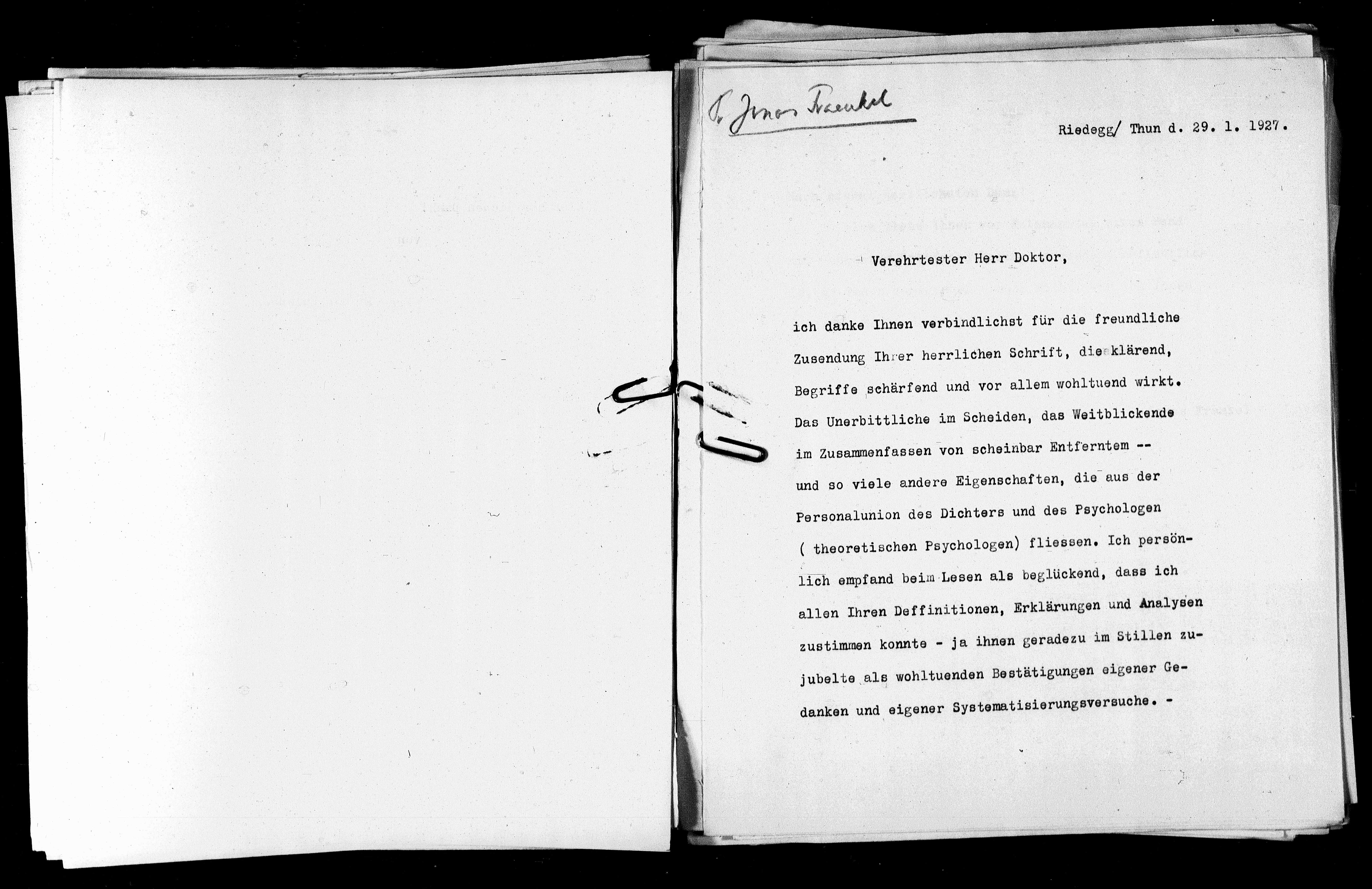 Riedegg Thun d. 29. 1. 1927.