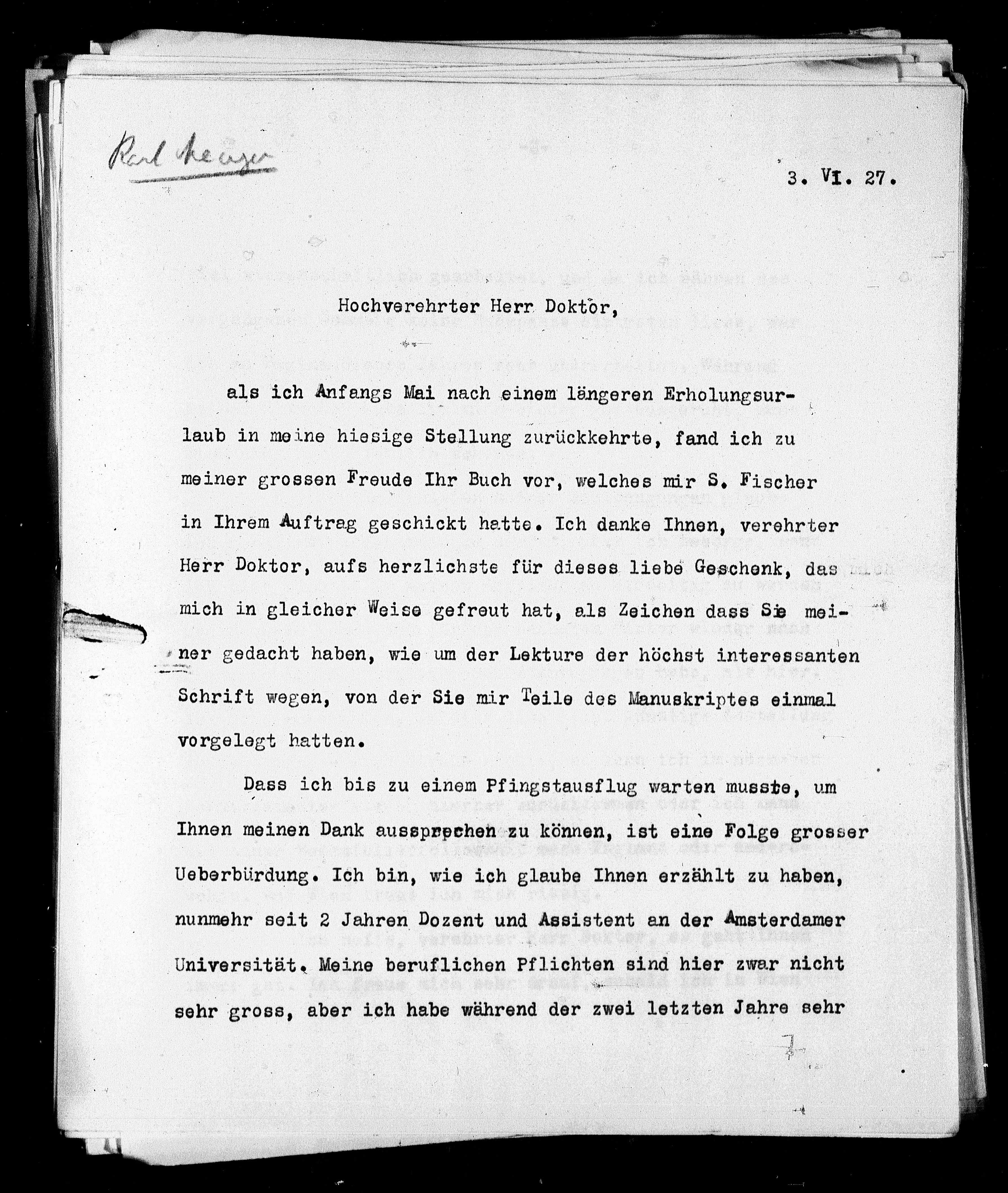 meiner grossen Freude Ihr Buch vor, welches mir S. Fischer