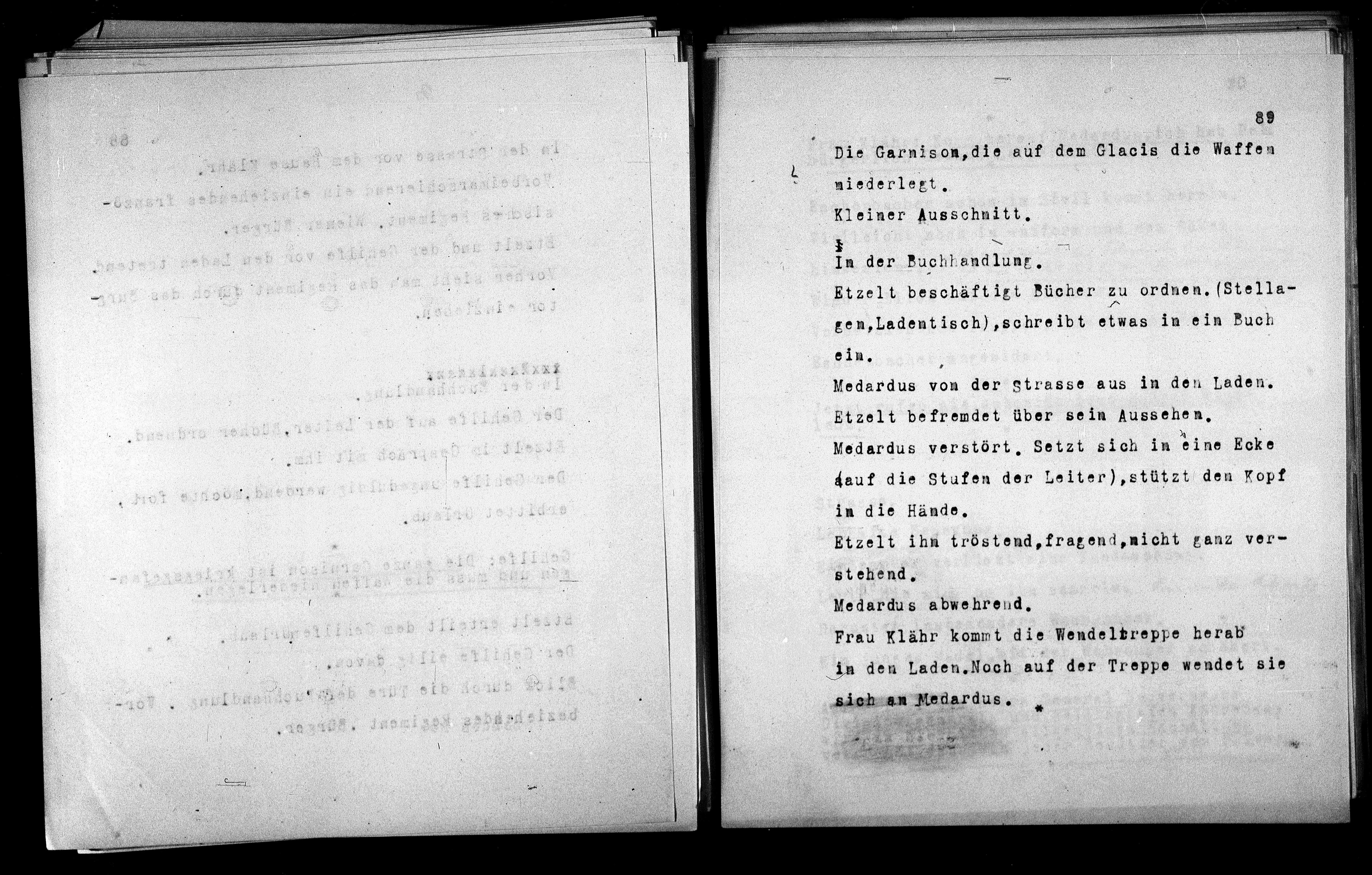 Medardus verstört. Setzt sich in eine Ecke