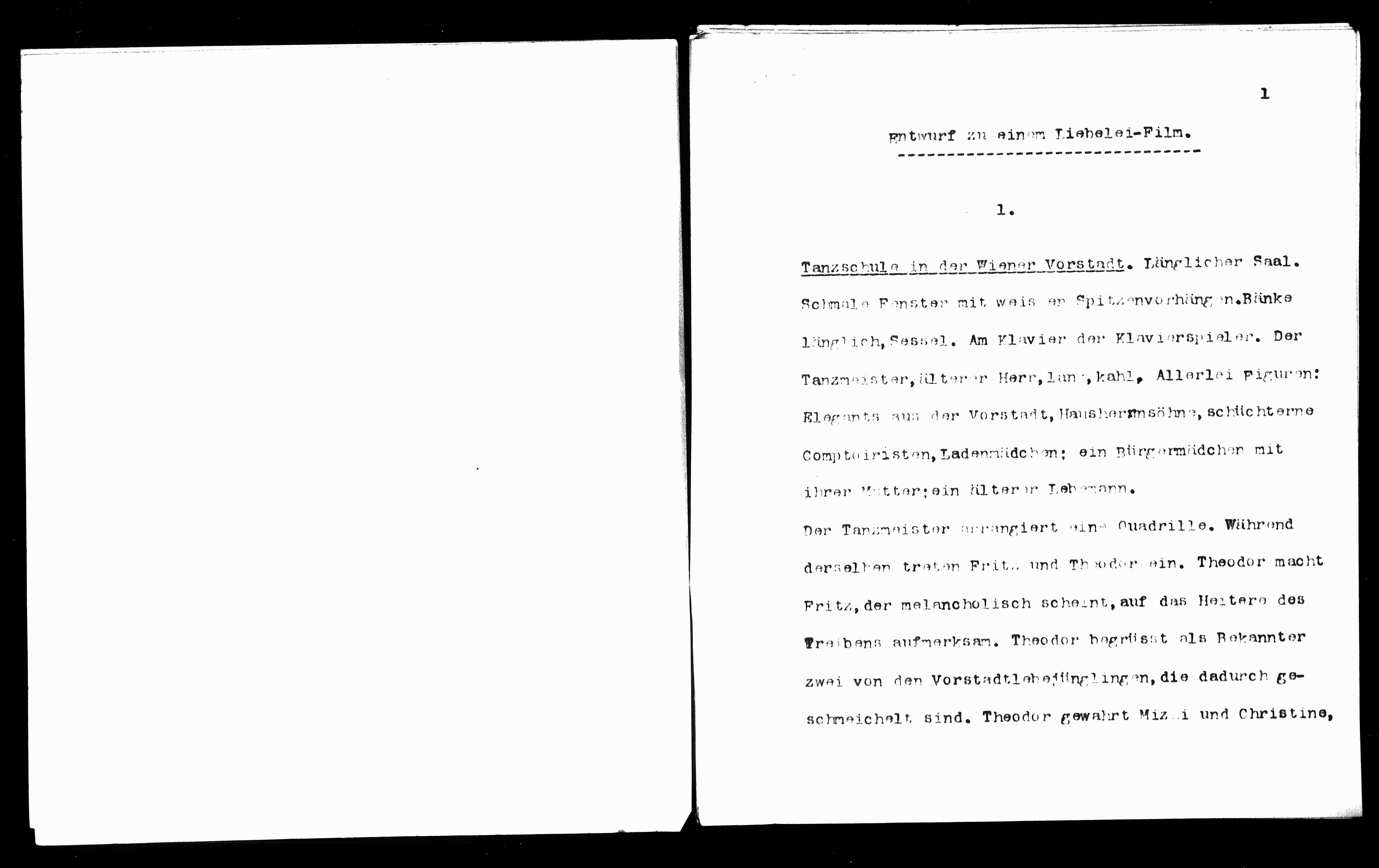 Entwurf zu einem Liebelei-Film.