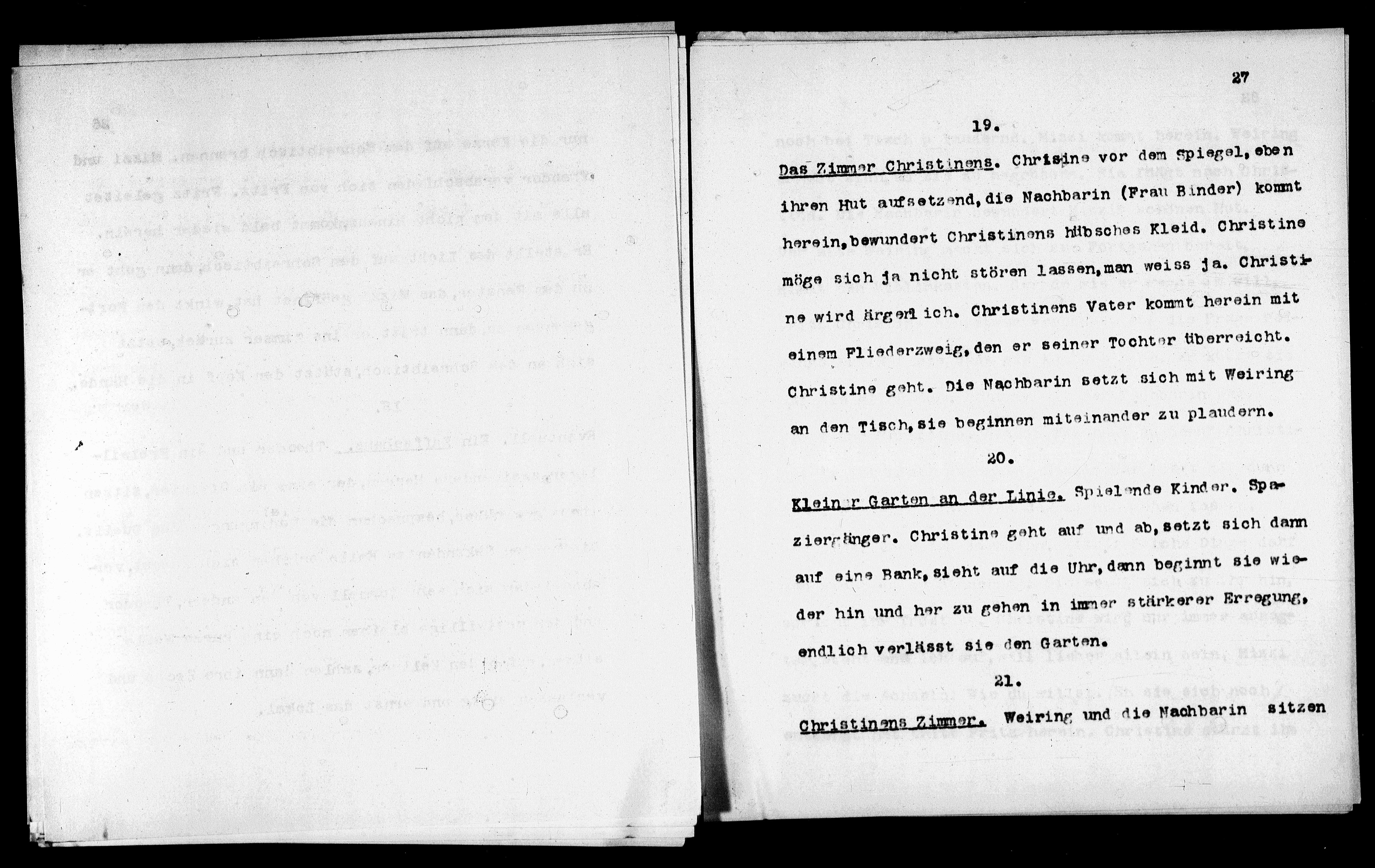 Christinens Zimmer. Weiring und die Nachbarin sitzen