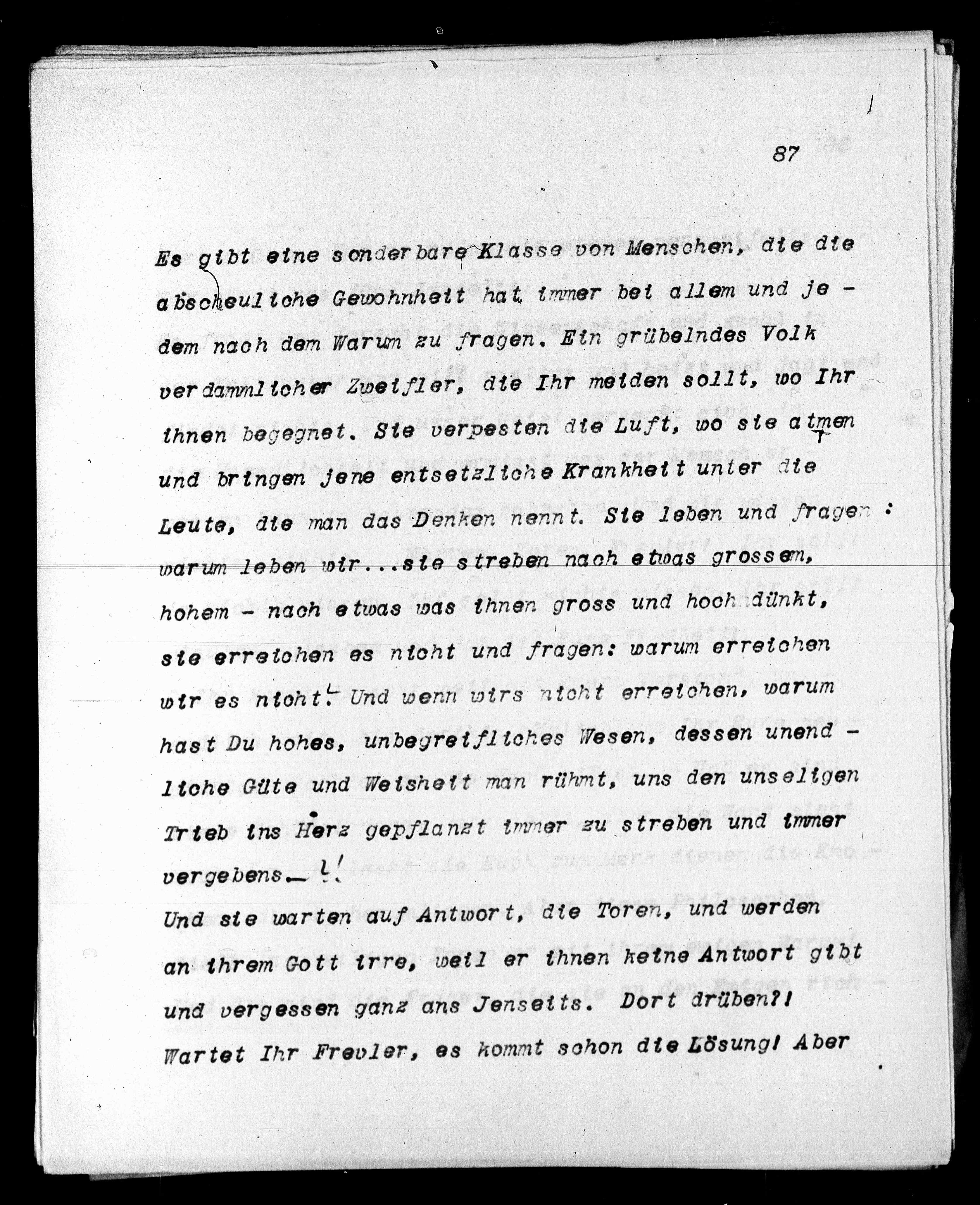 dem nach dem Warum zu fragen. Ein grübelndes Volk