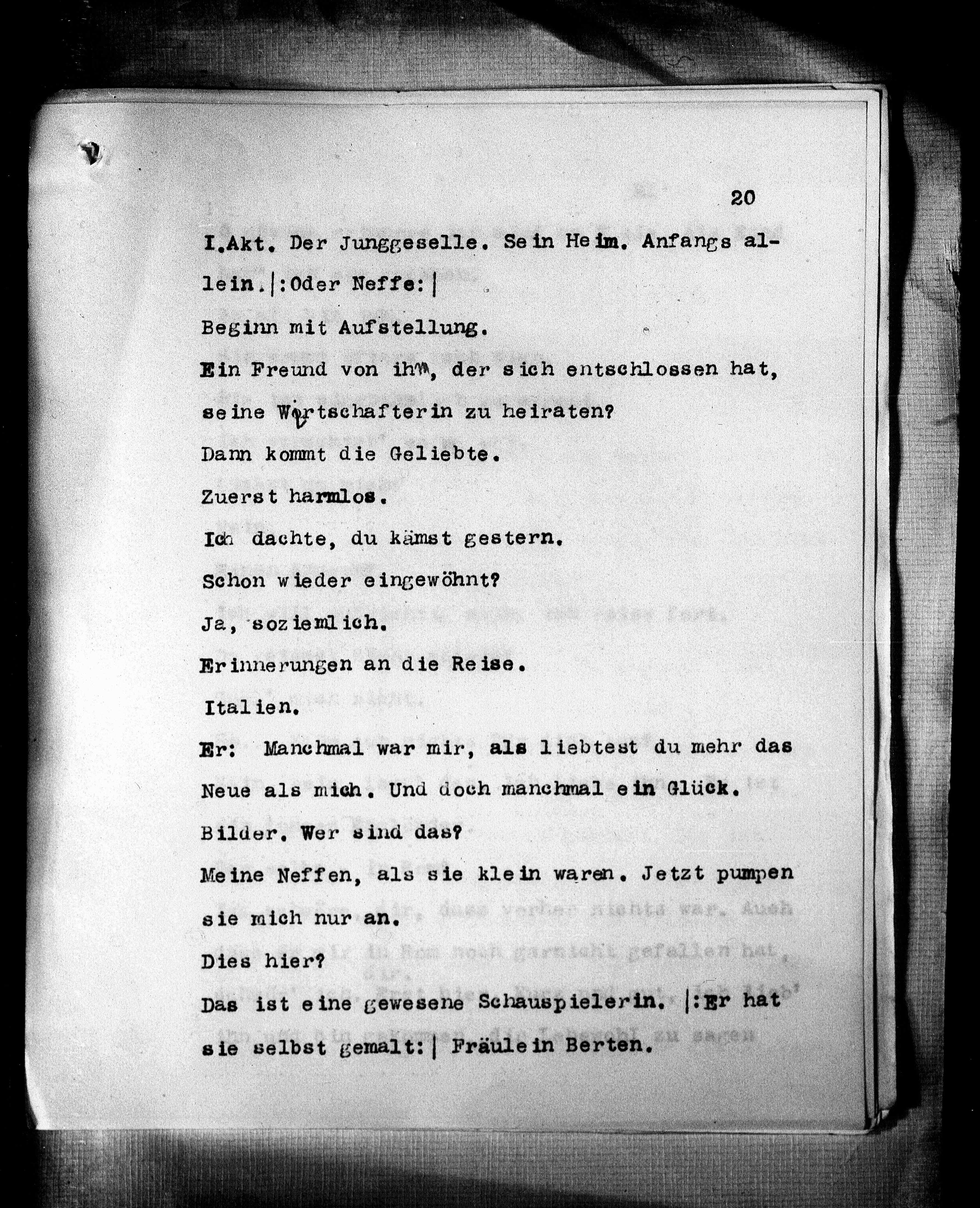 I.Akt. Der Junggeselle. Sein Heim. Anfangs al-
