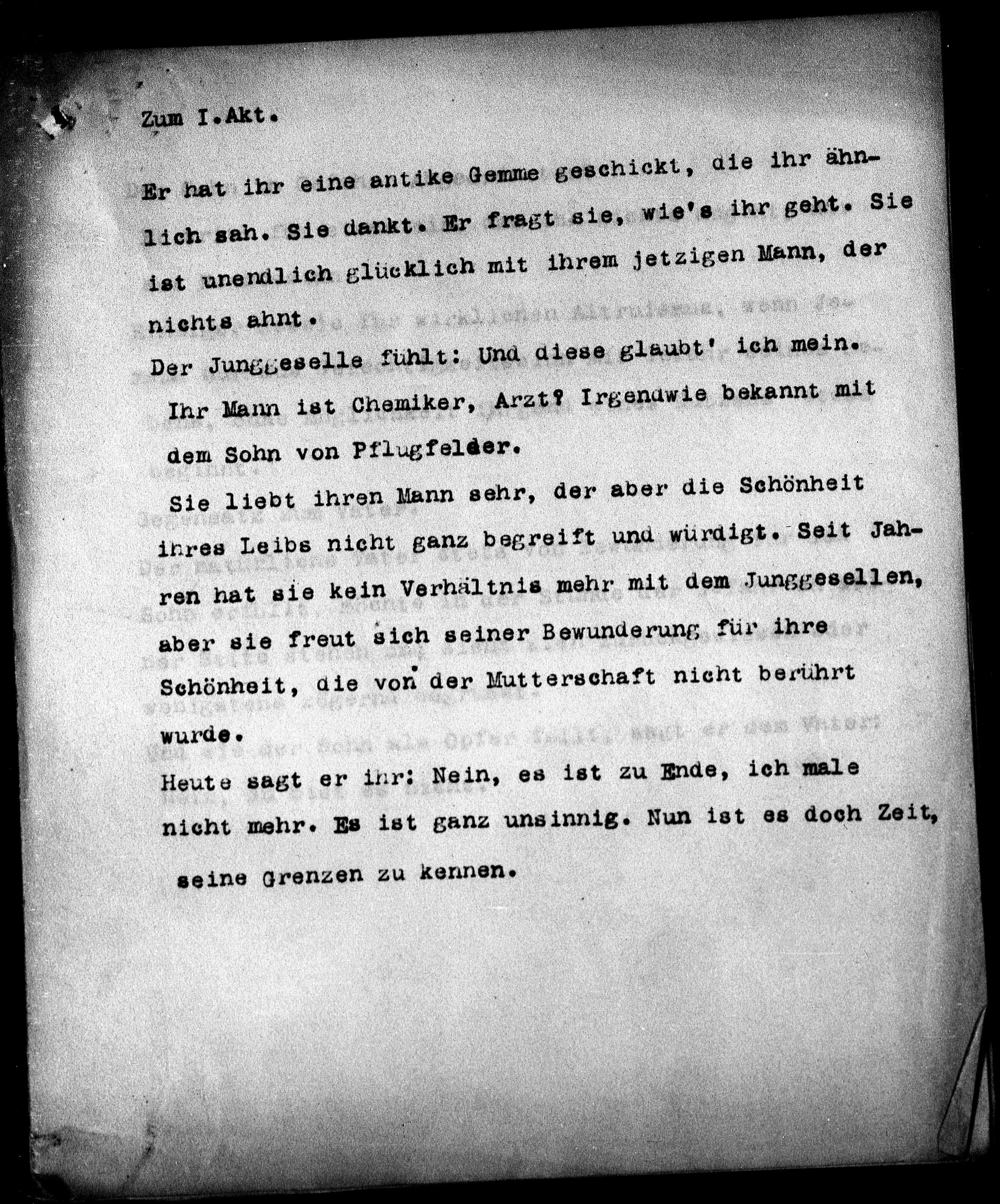 ich sah. Sie dankt. Er fragt sie, wie’s ihr geht. Sie