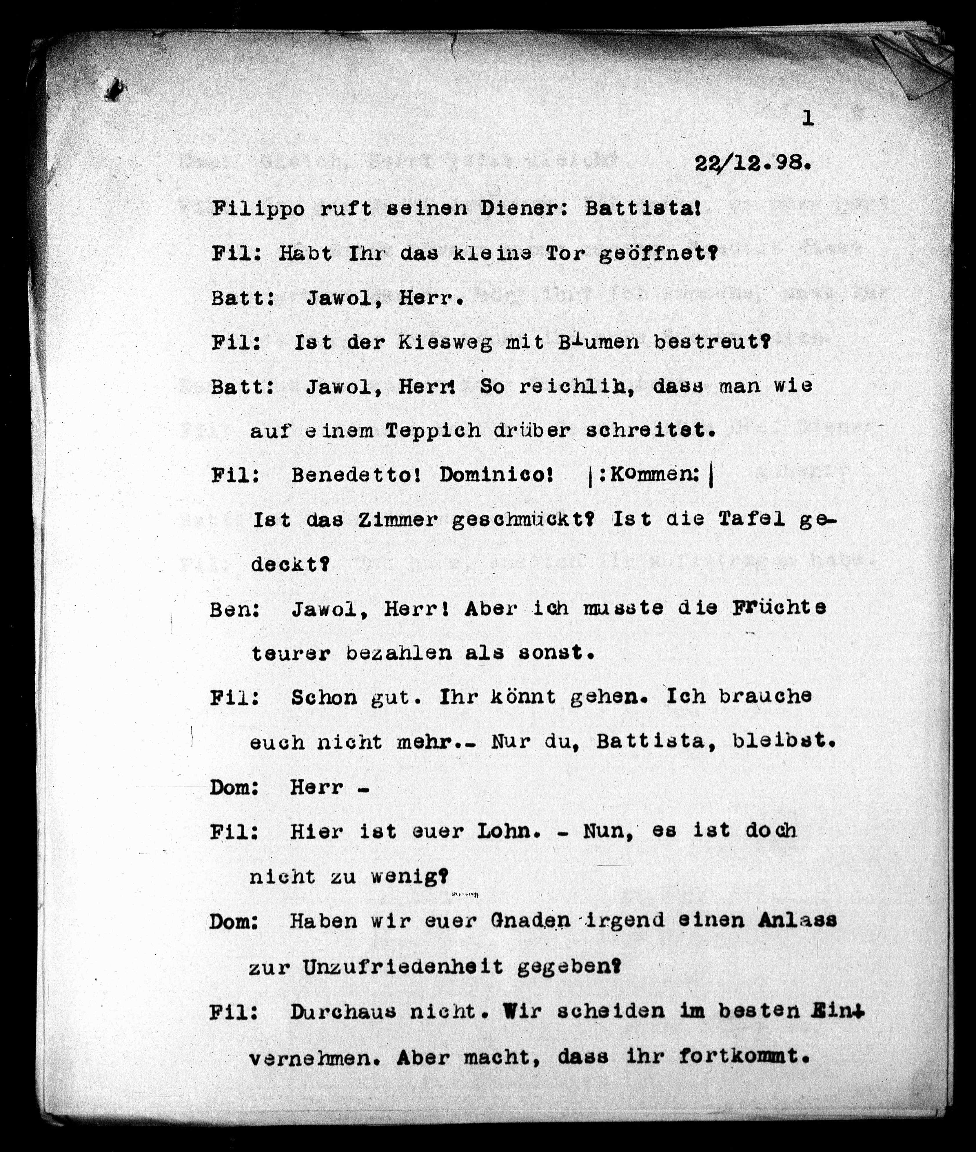 Filippo ruft seinen Diener: Battista!