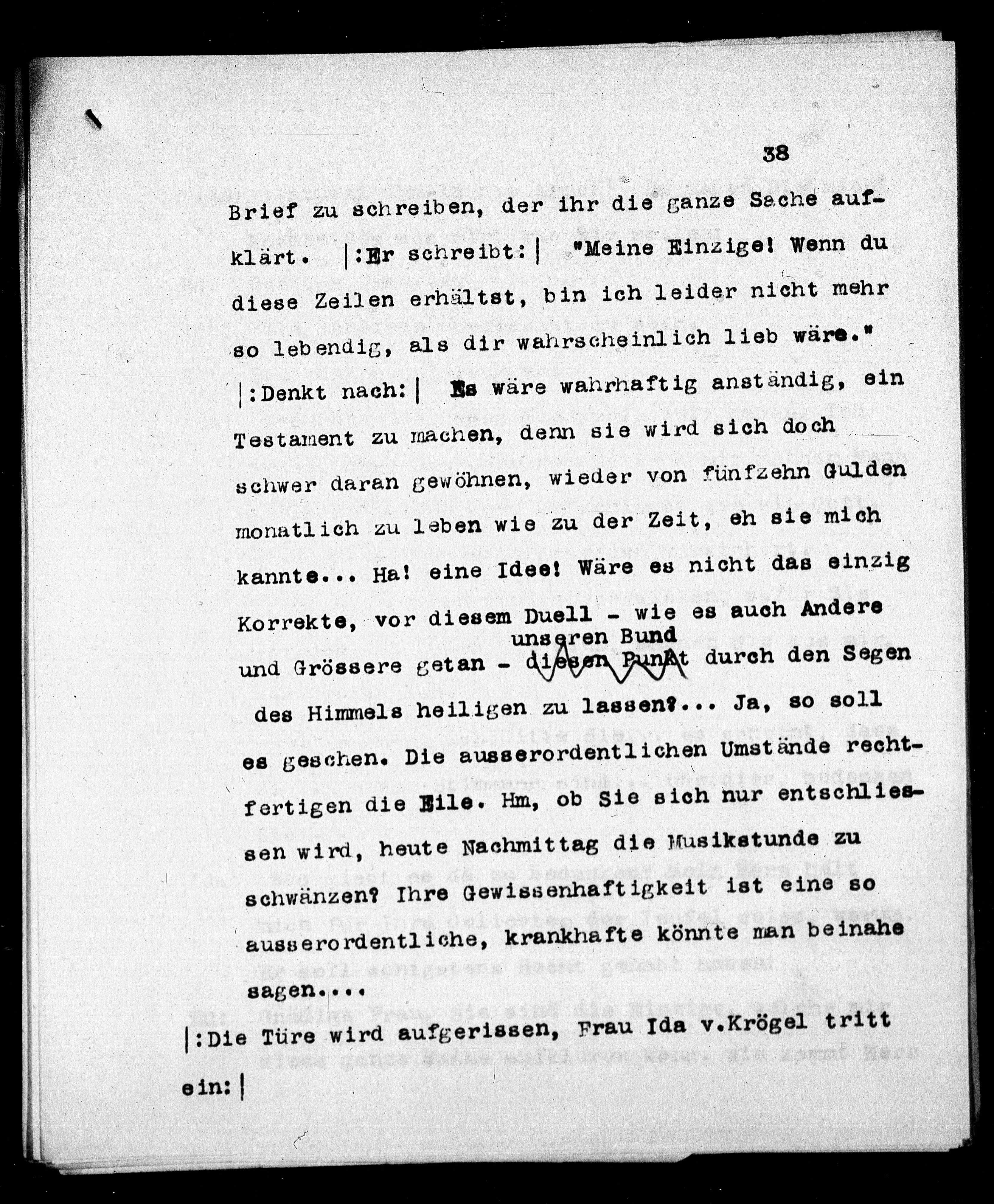 klärt. (Er schreibt: l "Meine Einzige! Wenn du