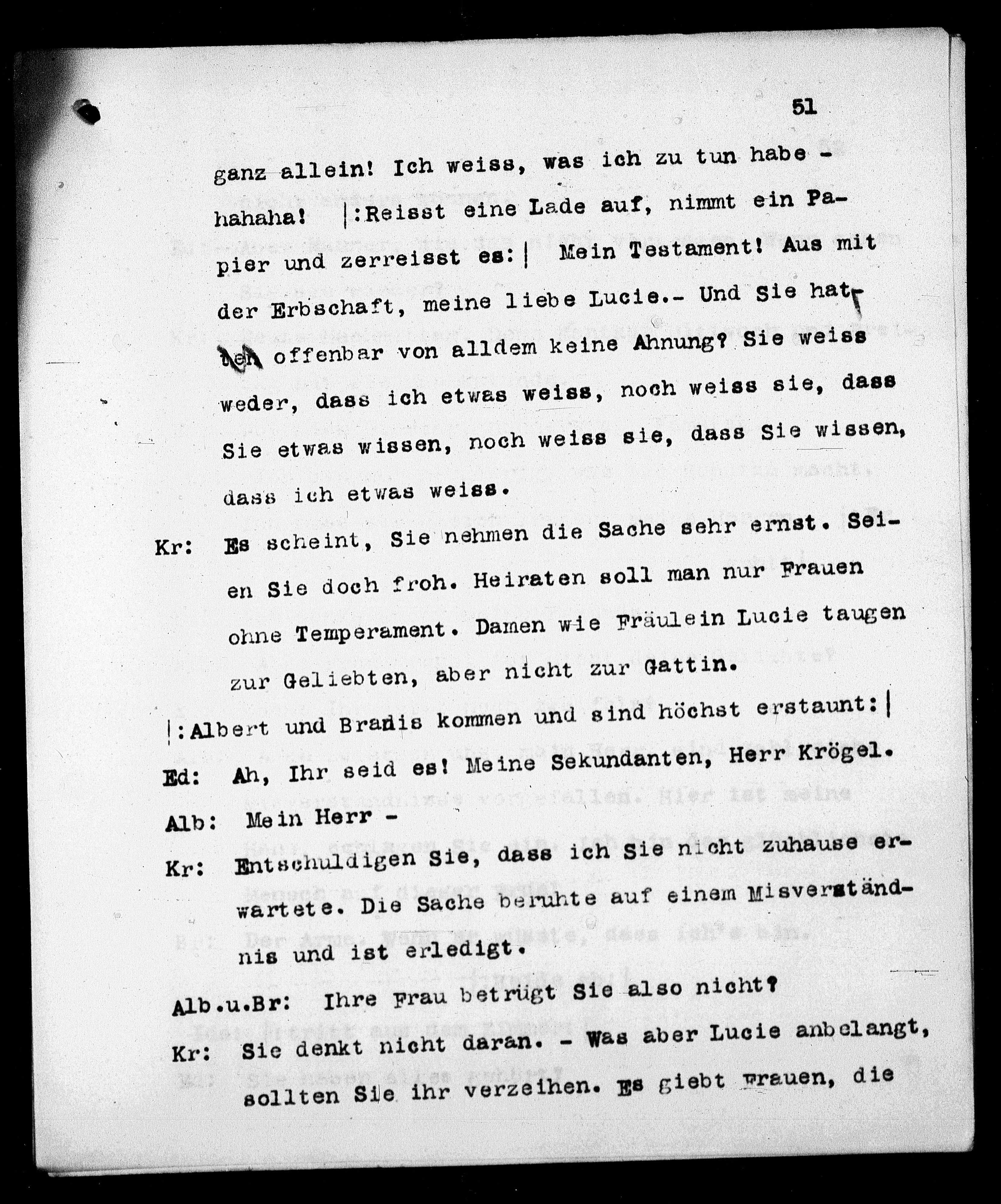 Kr: Sie denkt nicht daran. - Was aber Lucie anbelangt,
