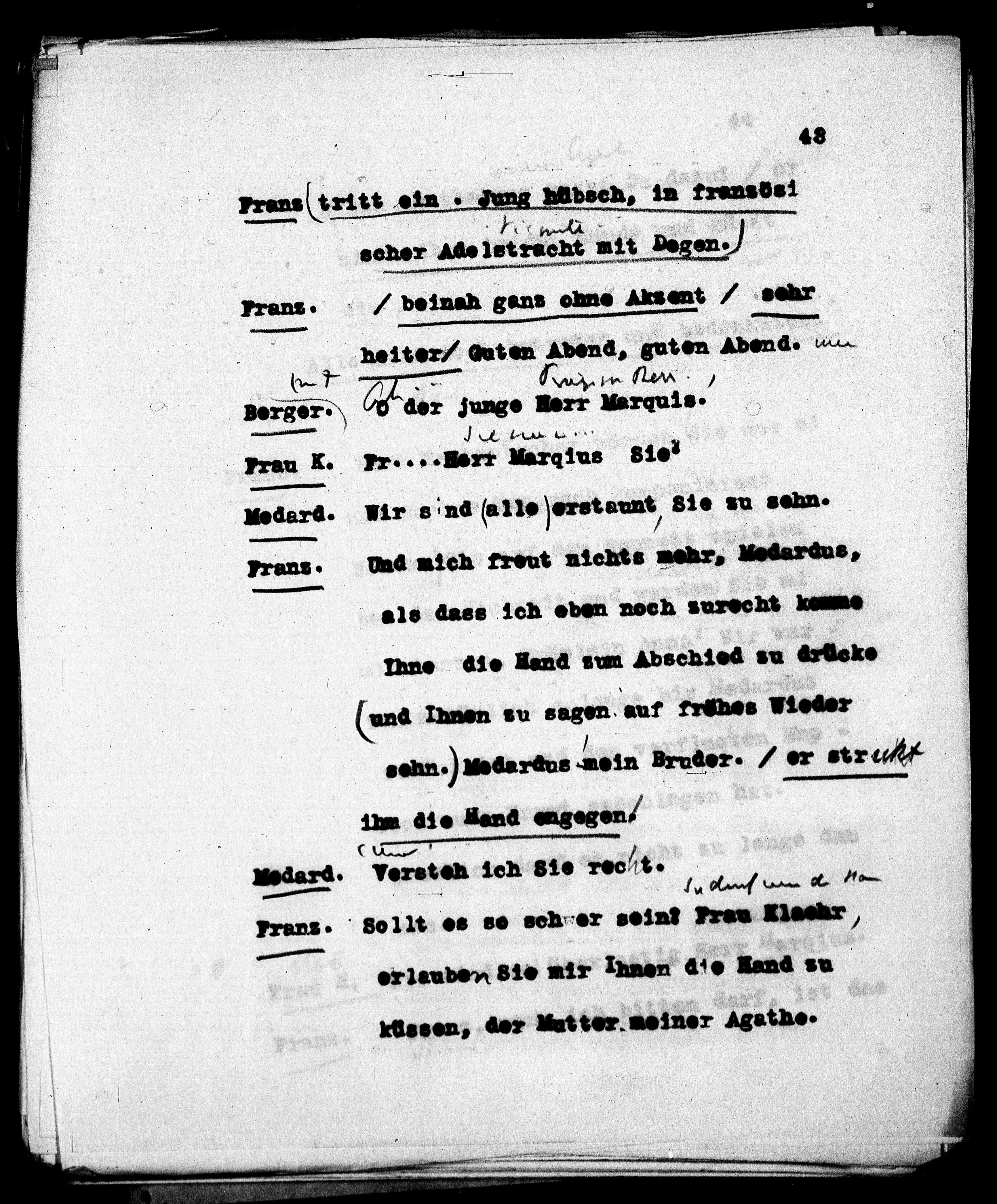 sehn. Medardus mein Bruder. / er strich