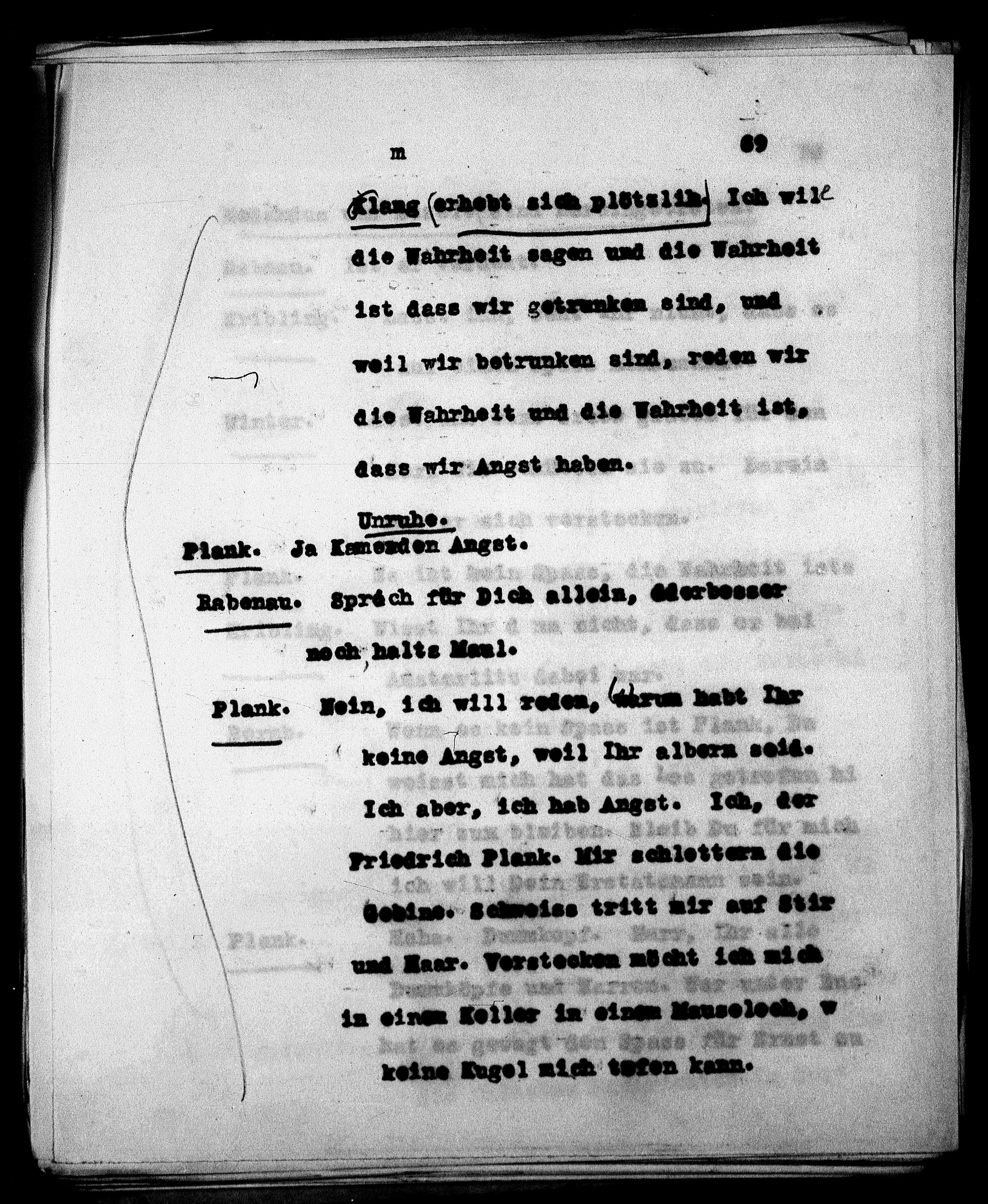 Plank. Nein, ich will reden, darum habt Ihr