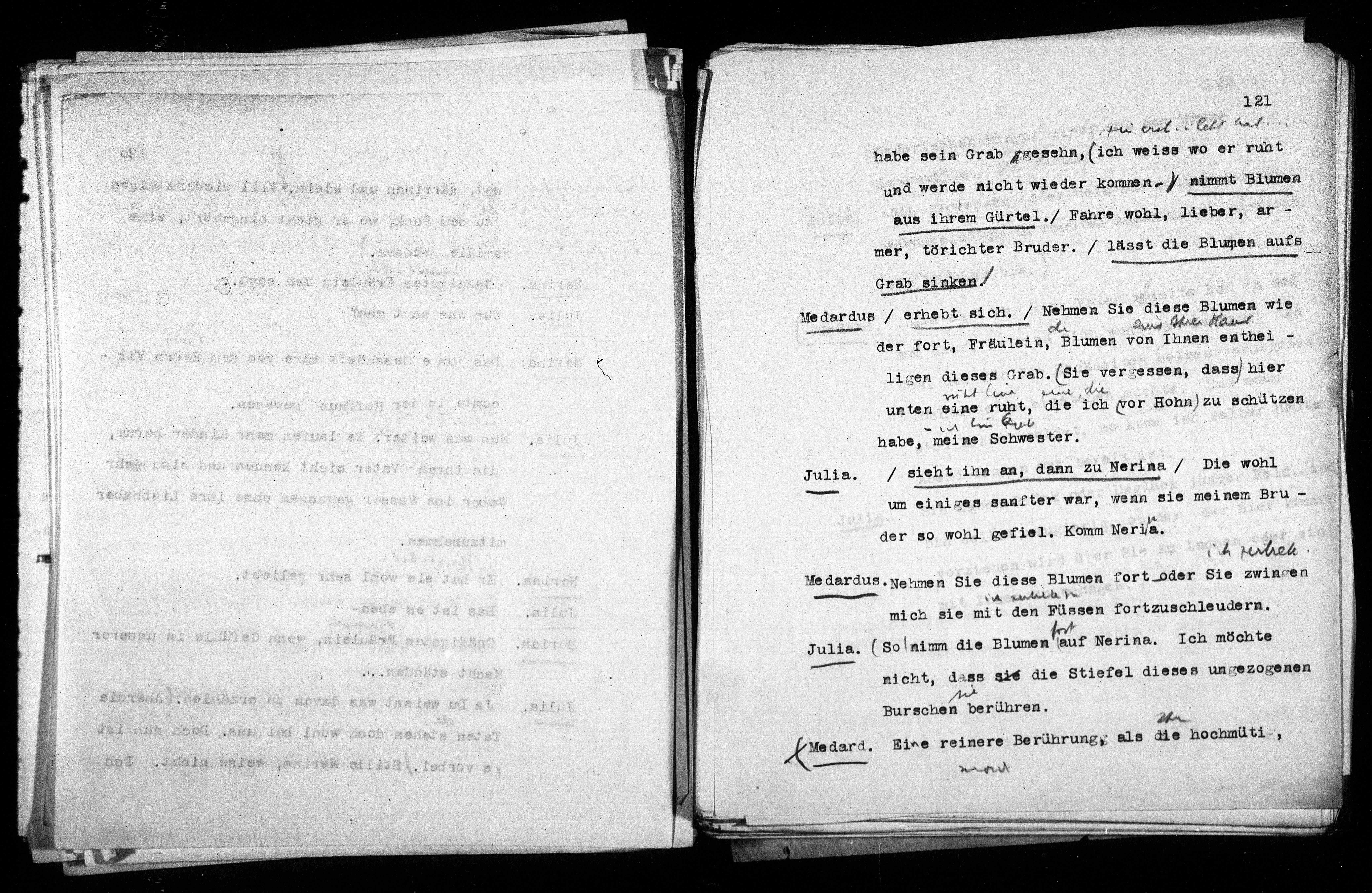 Medardus.Nehmen Sie diese Blumen fort oder Sie zwingen