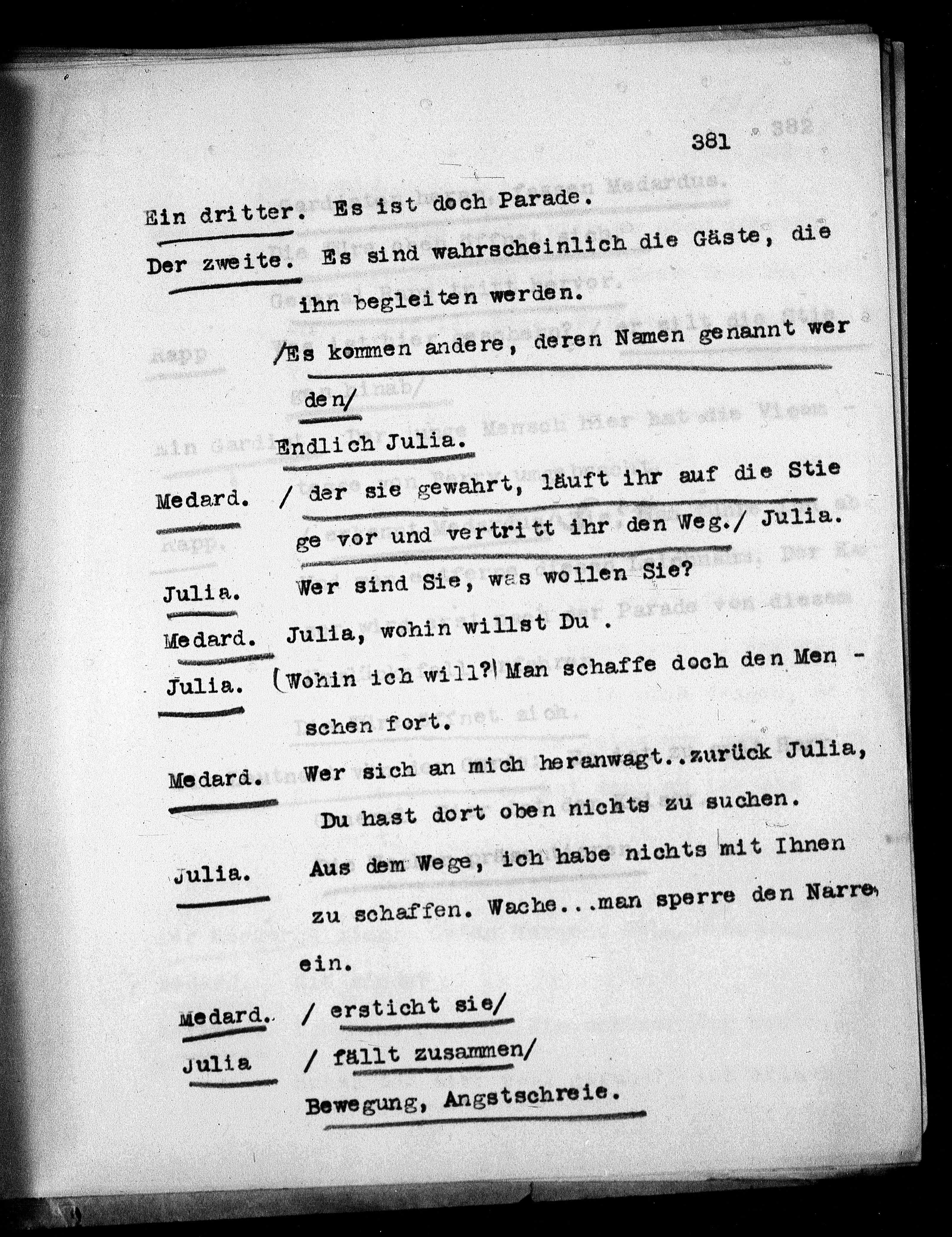 ge vor und vertritt ihr den Weg./ Julie.