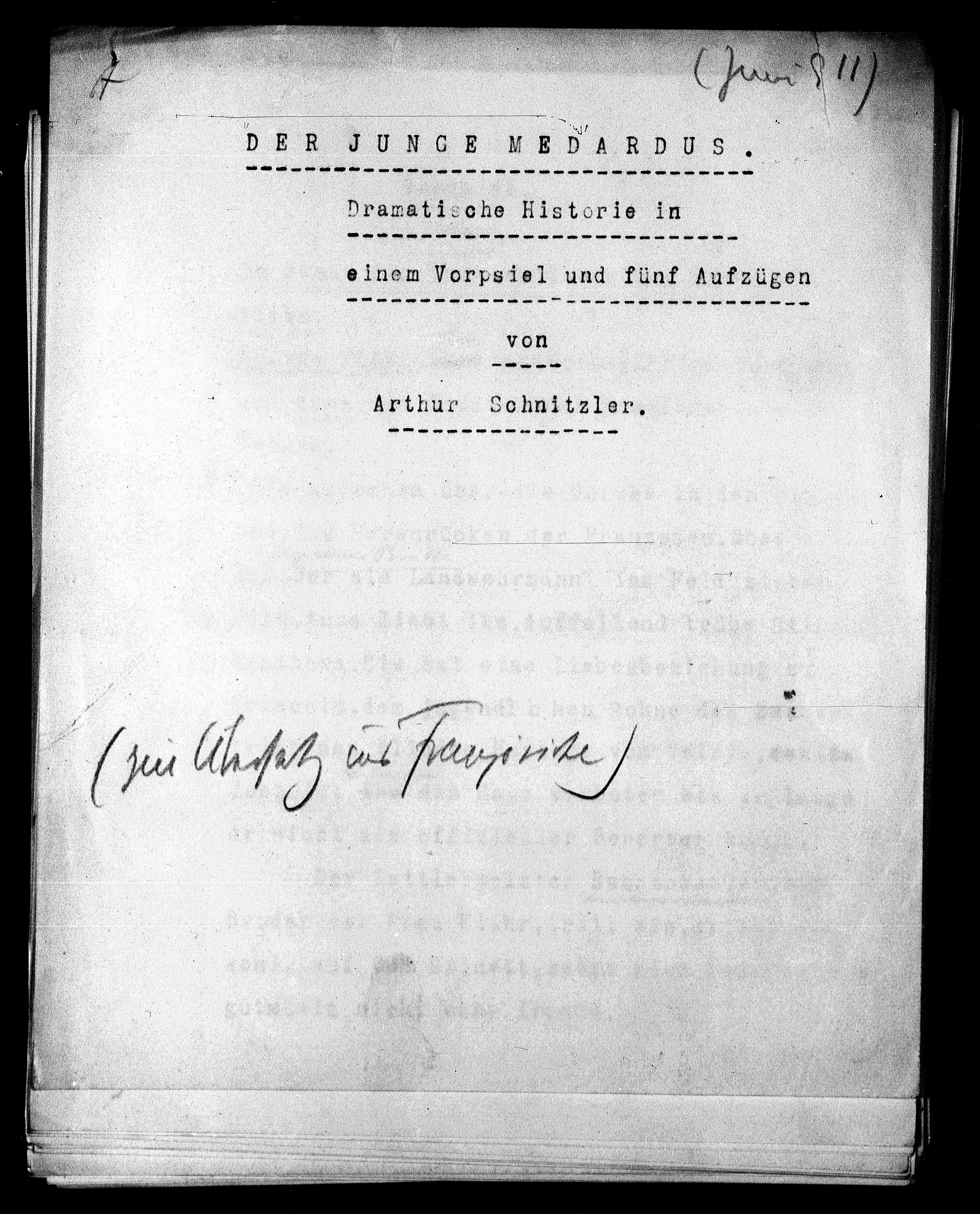 (Altwiener Stück, Doppelselbstmord), Seite 4, in: Mikroverfilmung des Cambridger Nachlasses. Hg. Peter Andorfer, Martin Anton Müller und Laura Untner, Austrian Centre for Digital Humanities and Cultural Heritage, Wien 2024, https://schnitzler-mikrofilme.acdh.oeaw.ac.at/1428195_0004.html
