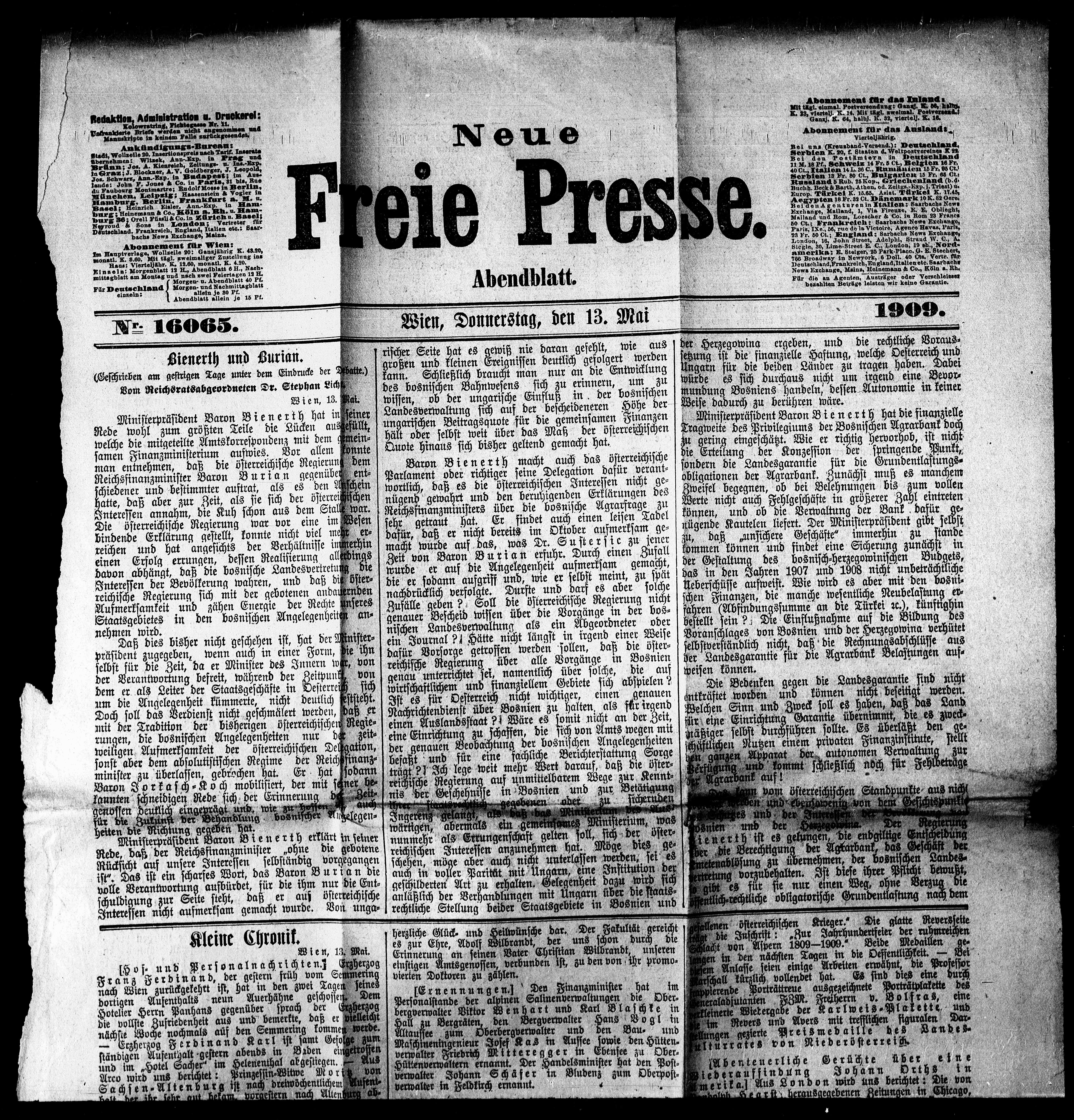 Wien, 13. Mai.