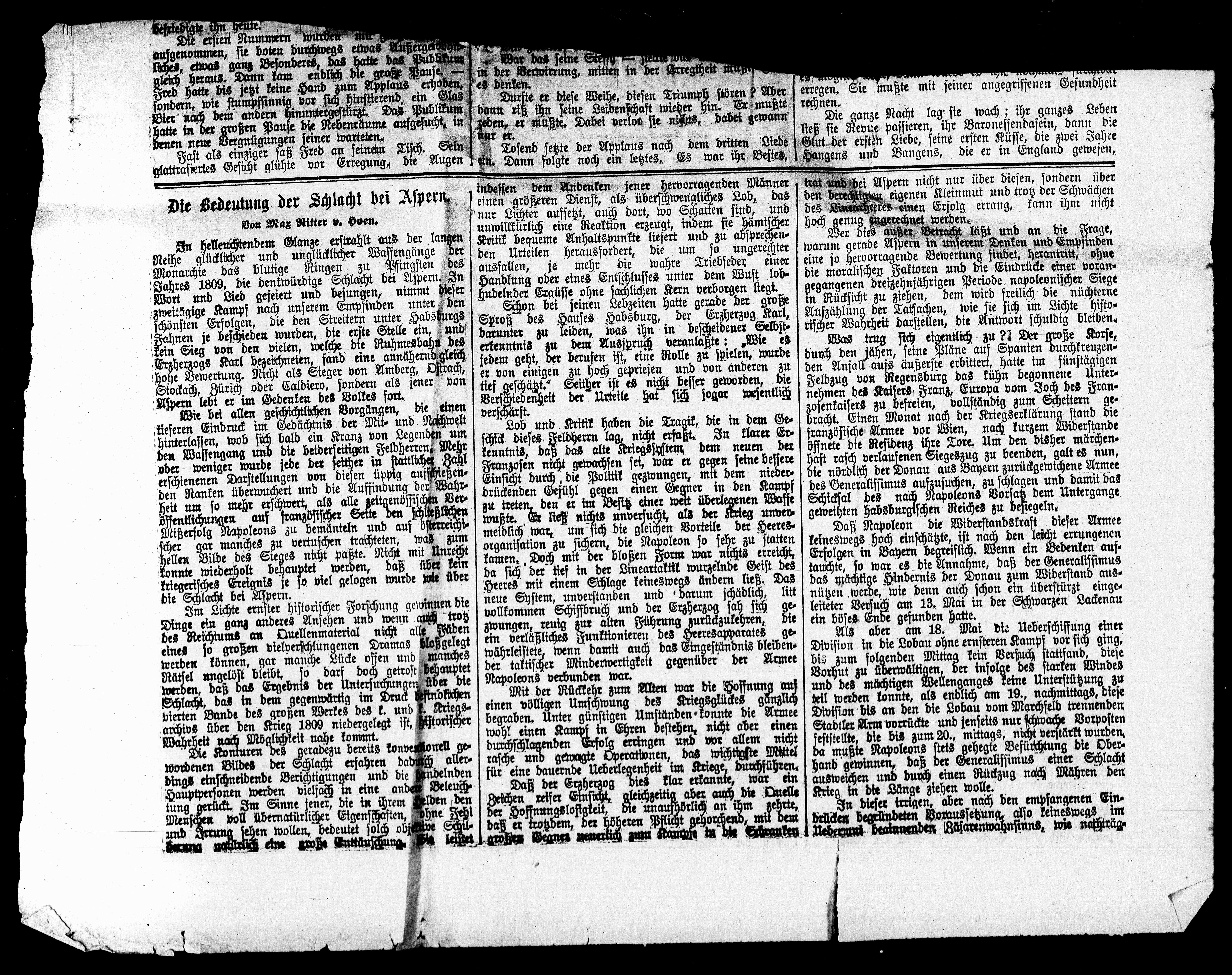 trat und bei Aspern nicht nur über diesen, sondern übr