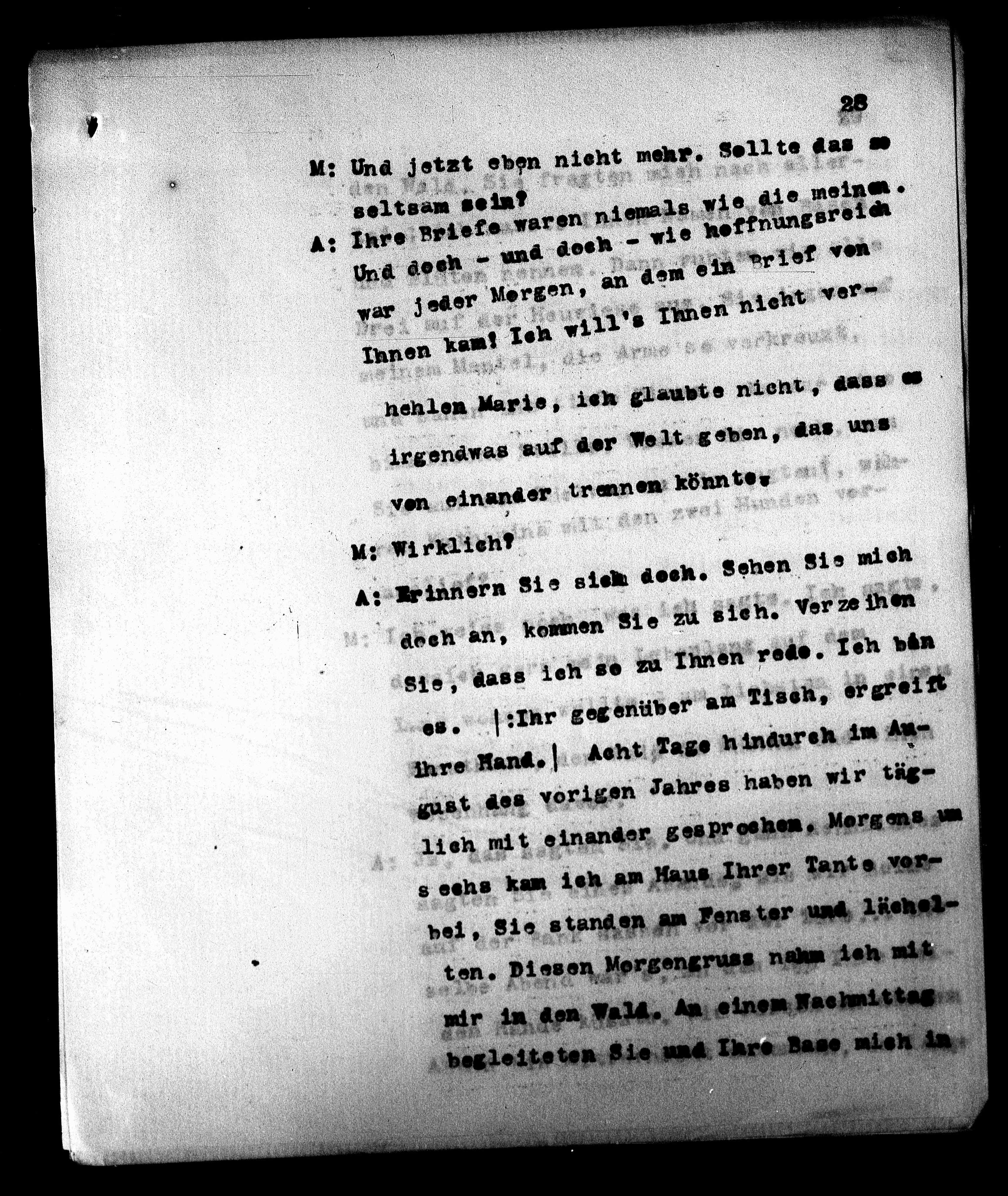 A: Ihre Briefe waren niemals wie die meinen.