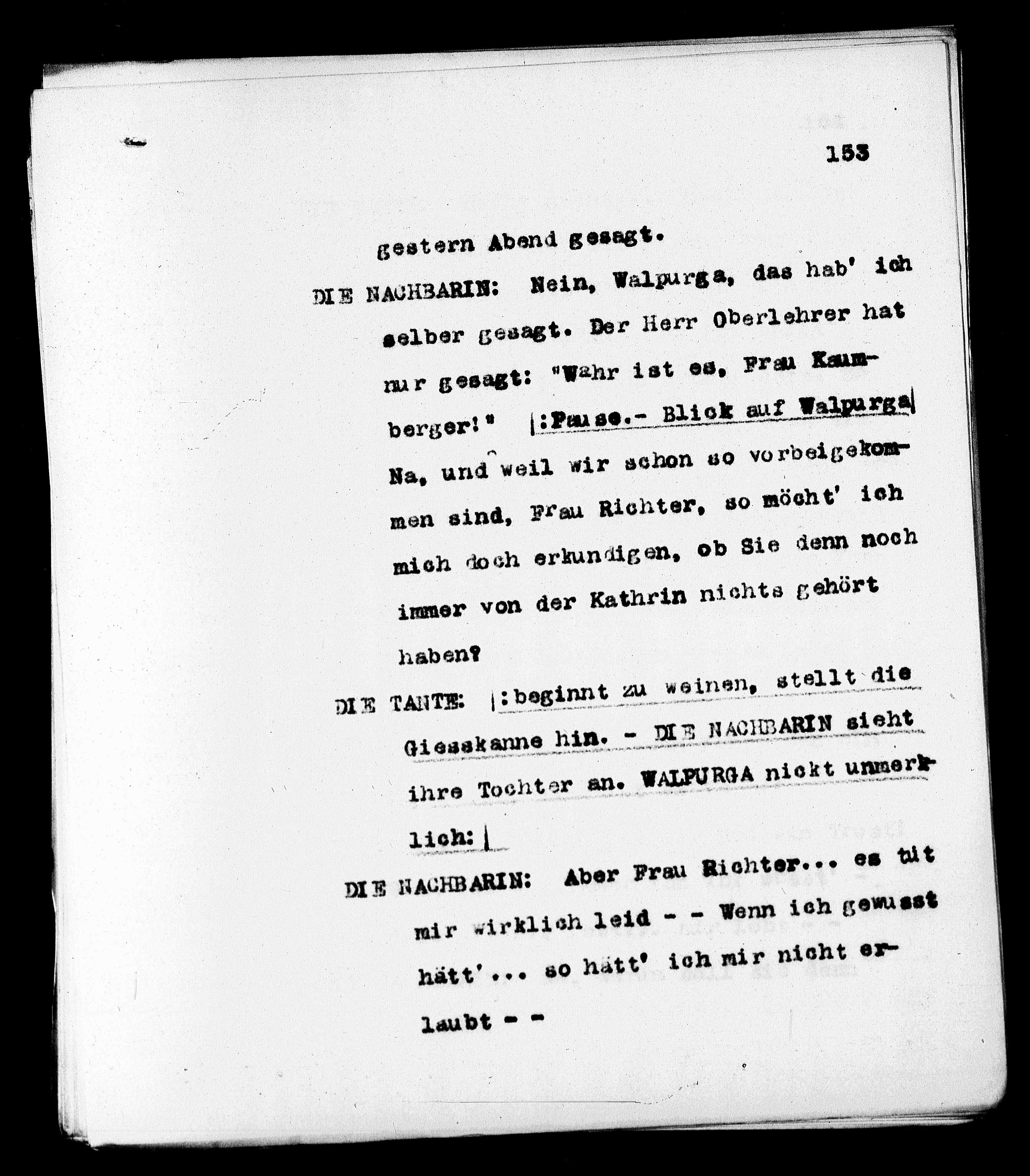 DIE NACHBARIN: Nein, Walpurga, das hab' ich