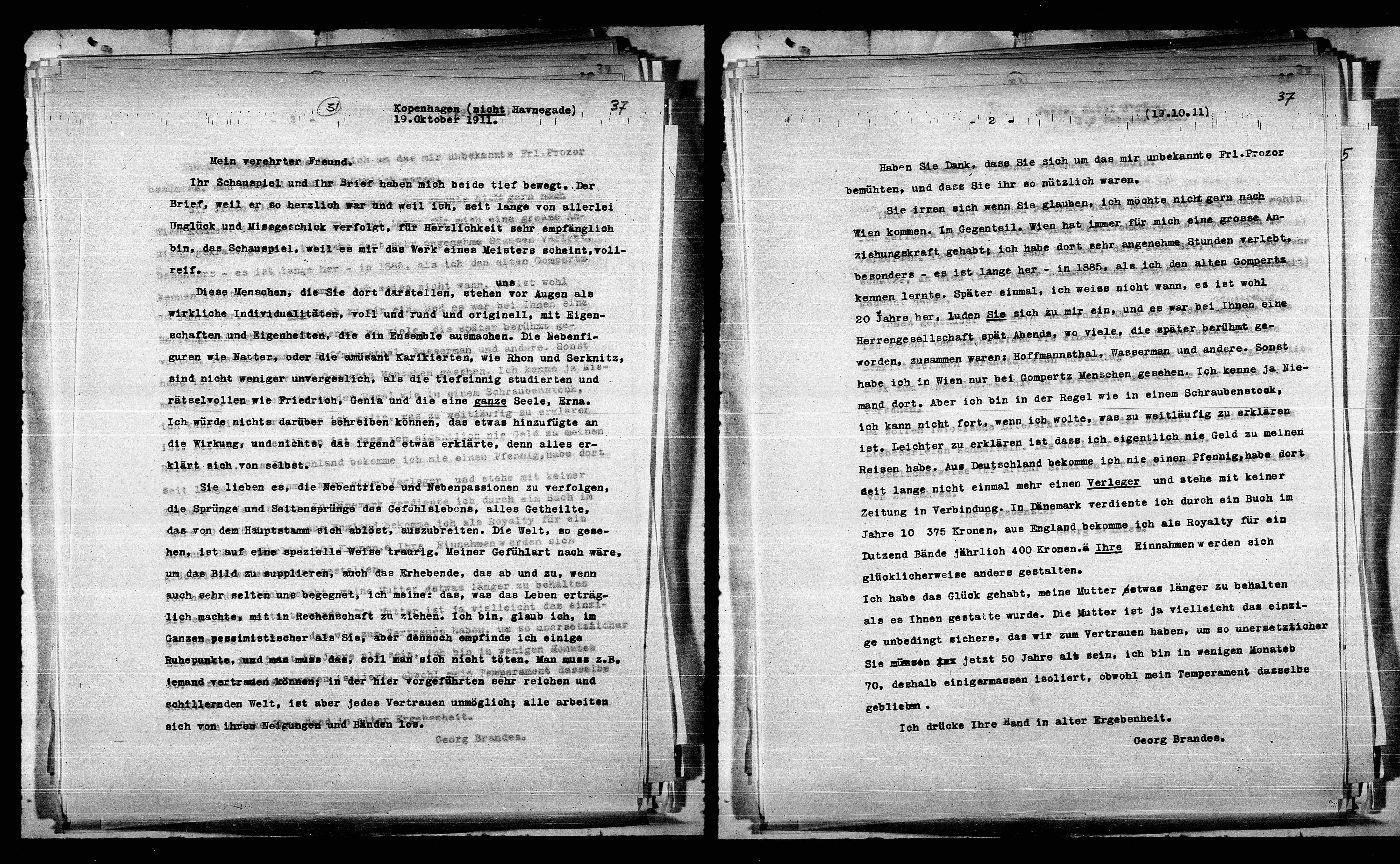 Ihr Schauspiel und Ihr Brief haben mich beide tief bewegt. Der