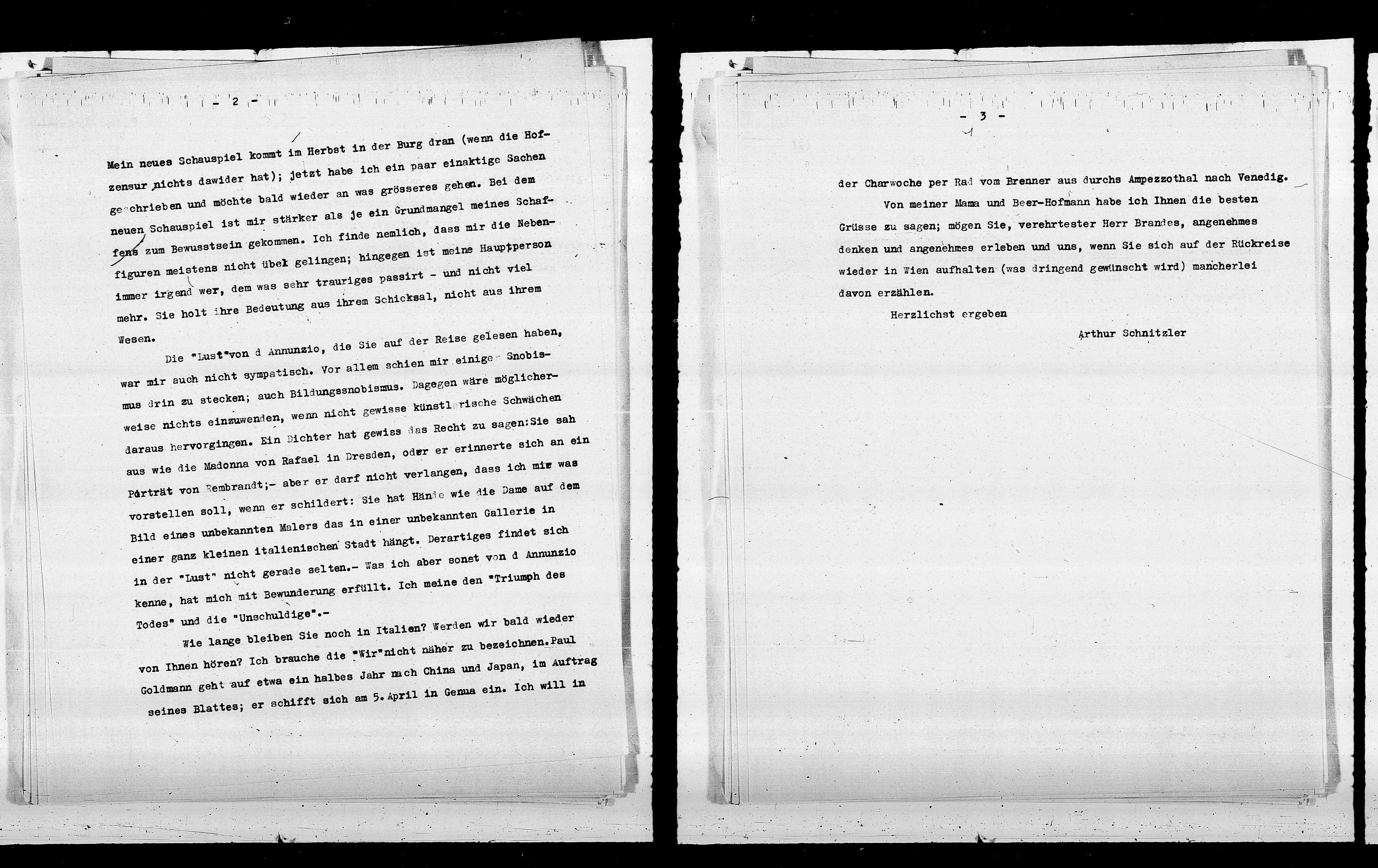 Grüsse zu sagen; mögen Sie, verehrtester Herr Brandes, angenehmes