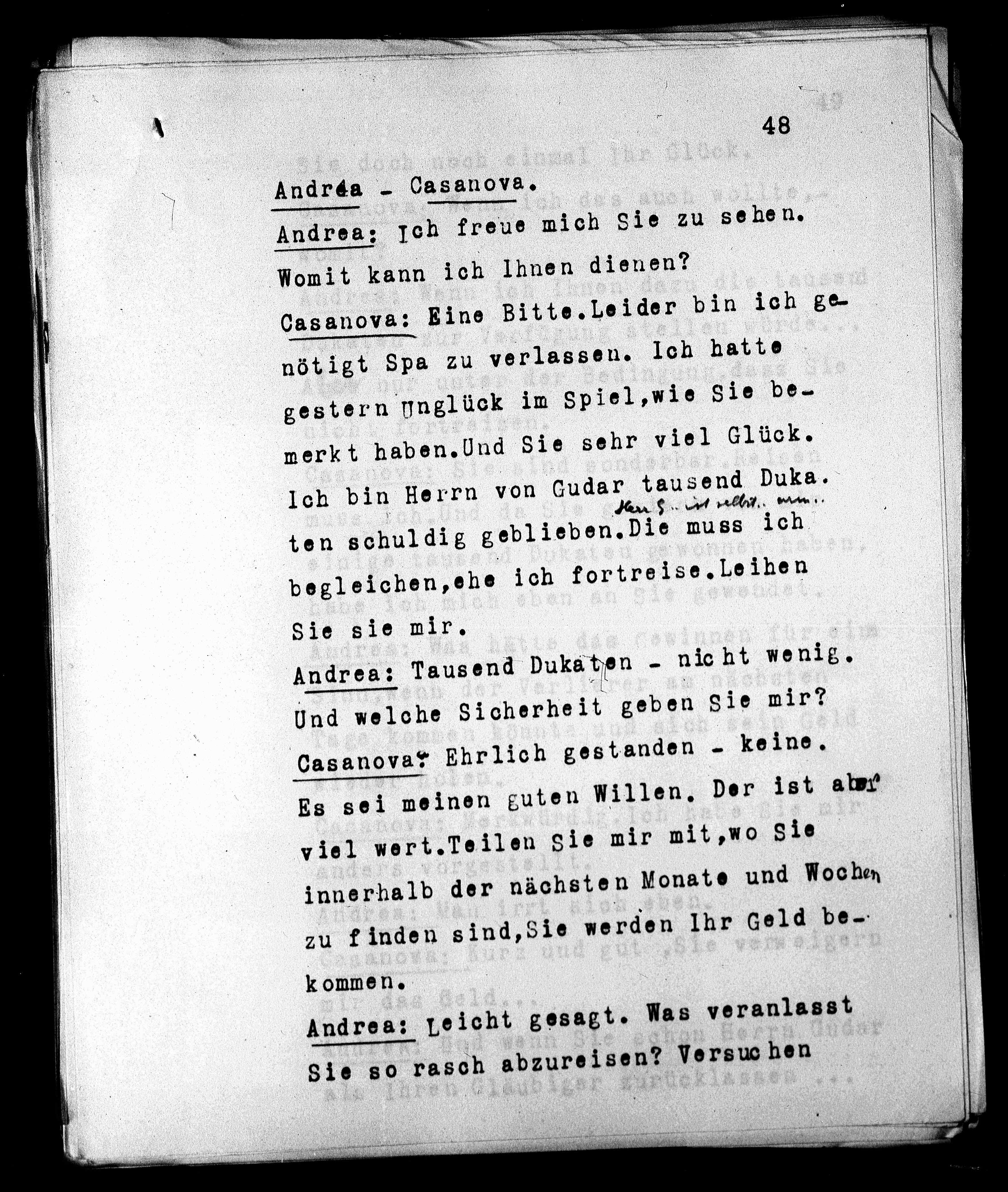 Casanova: Eine Bitte. Leider bin ich ge-