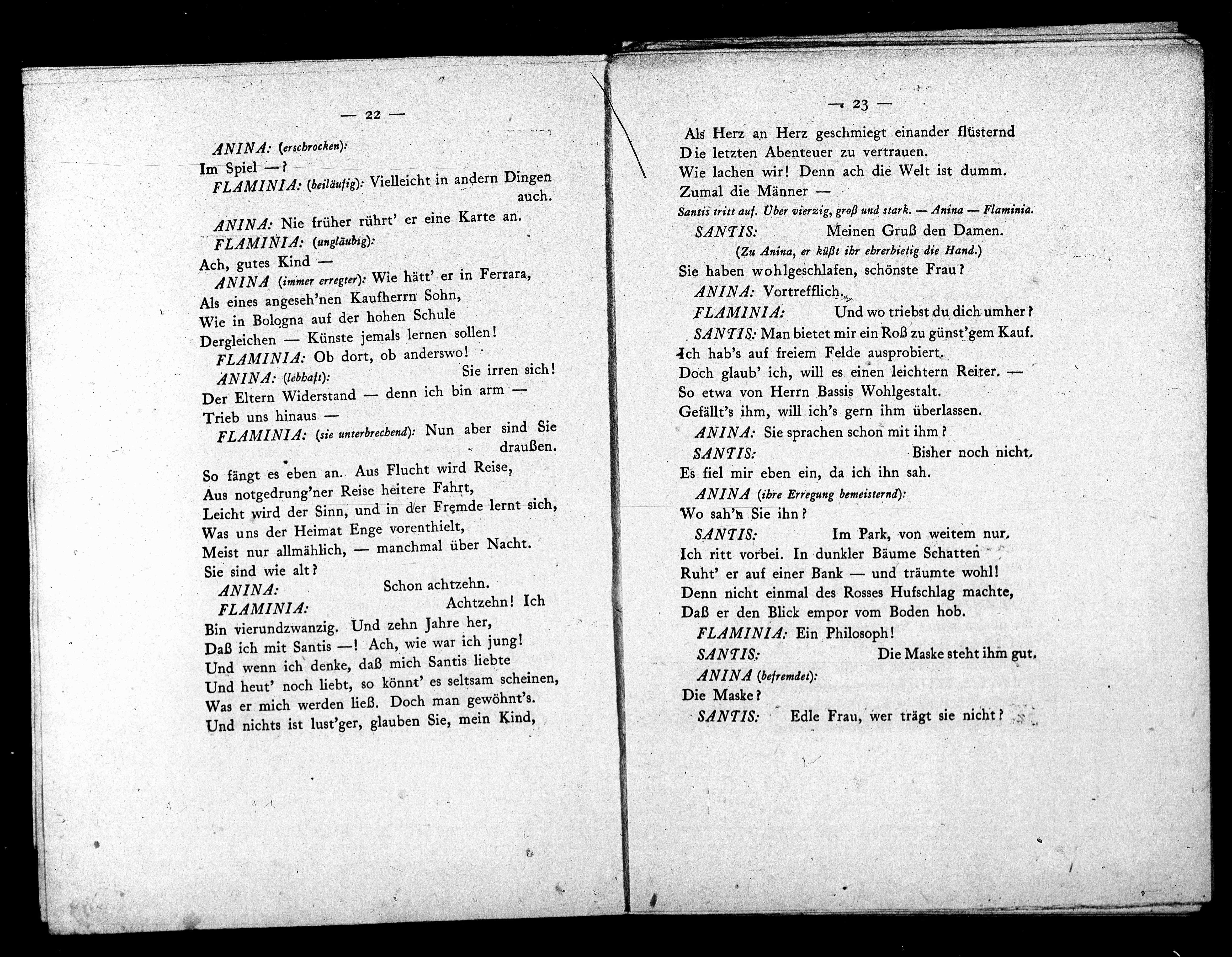 Santis tritt auf. Uber vierzig, groß und stark. — Anina — Flaminia.