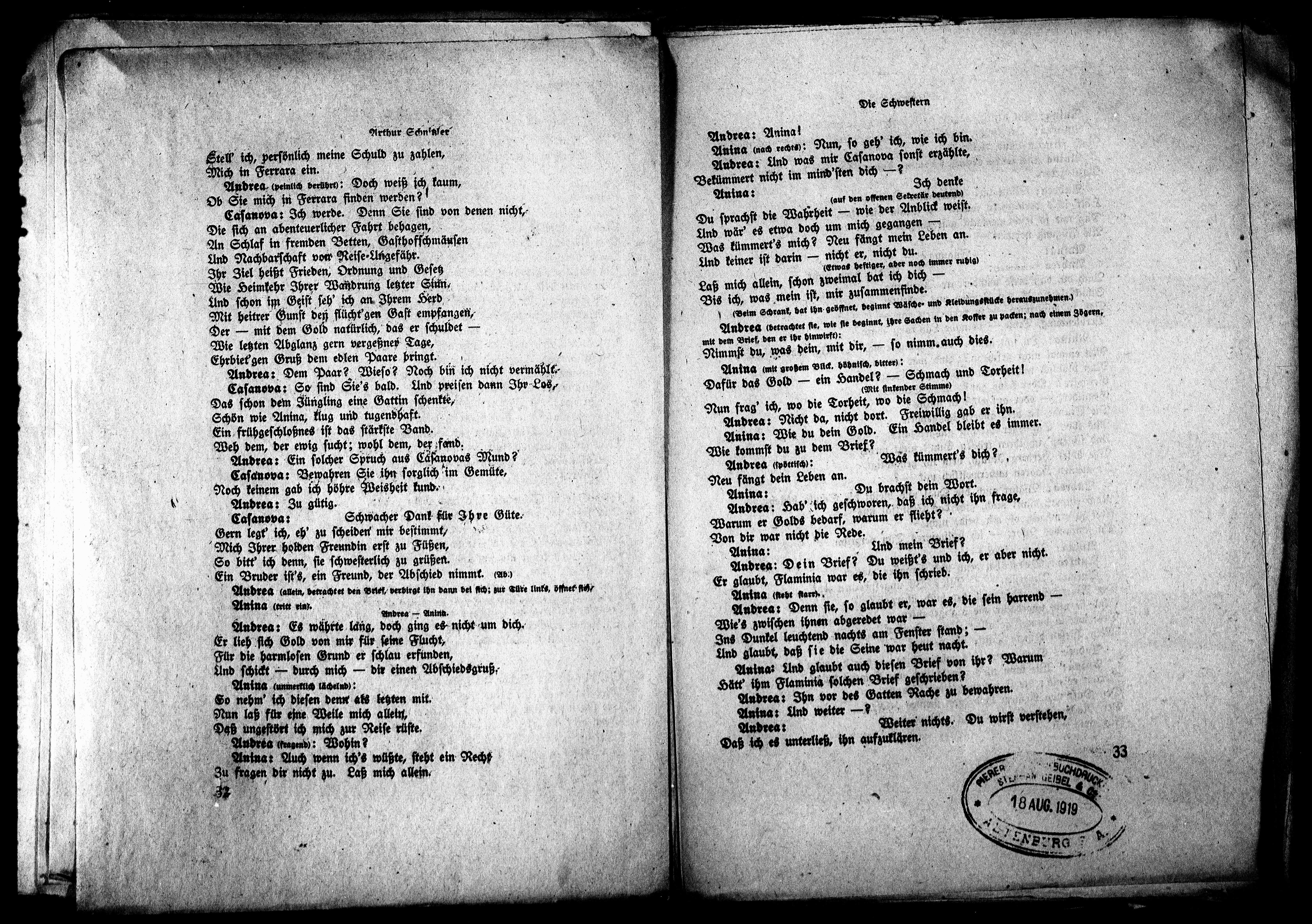 Anina (nach rechts): Nun, so geh' ich, wie ich bin.