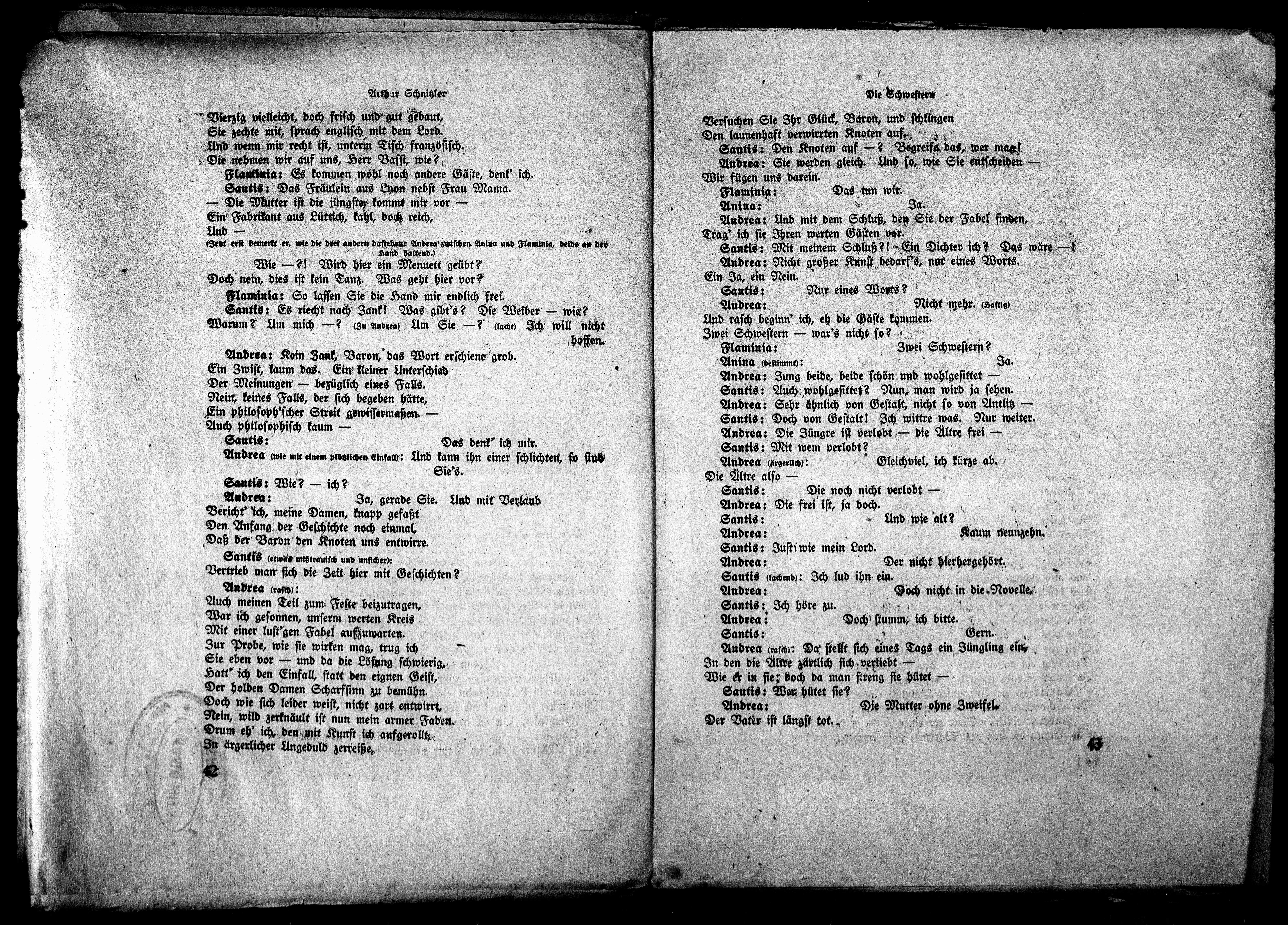 Gezt erst bemerkt er, wie die drei andern dastehaux Andrea zwischen Anna und Flaminia, beide an der