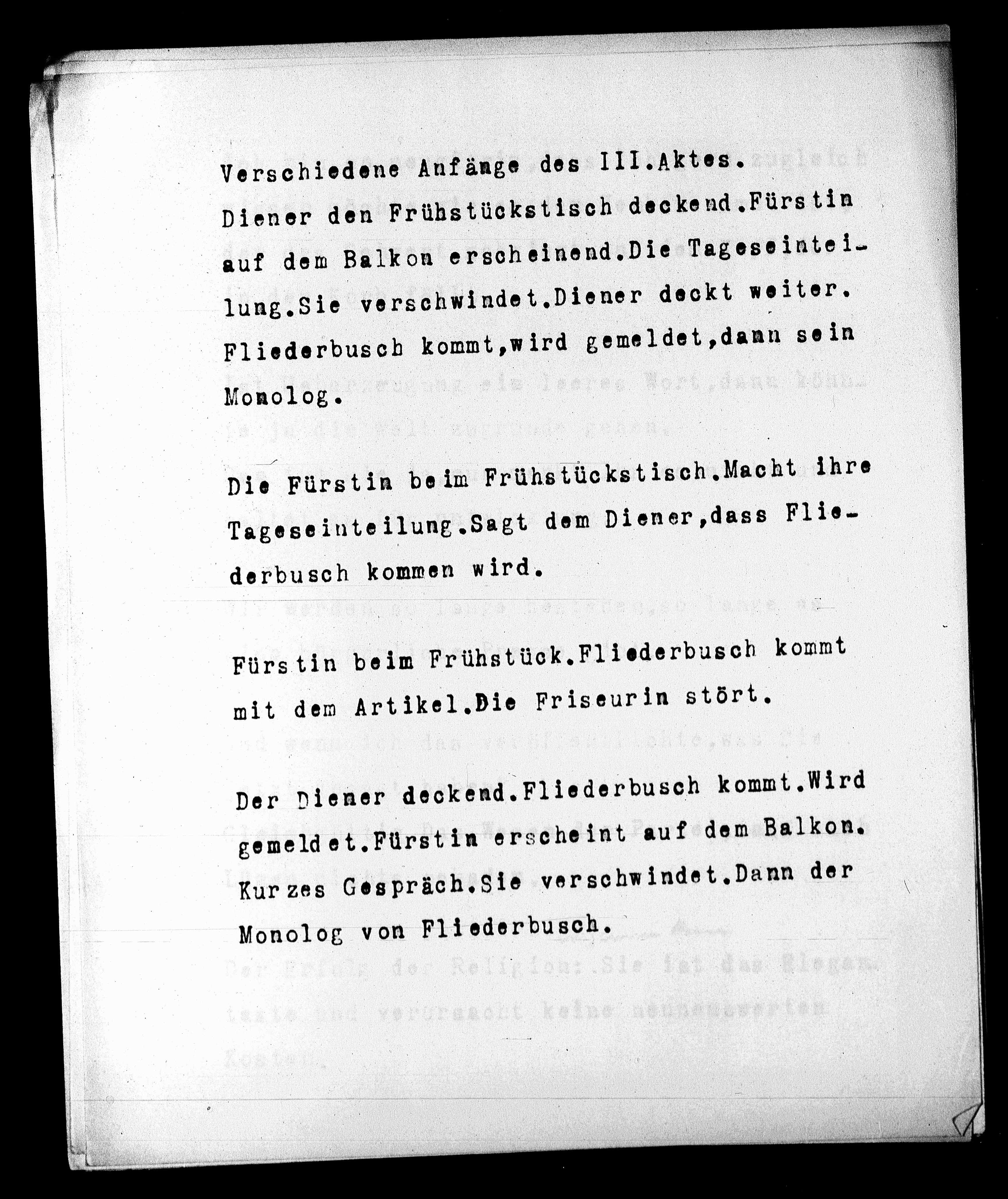 Verschiedene Anfänge des III.Aktes.