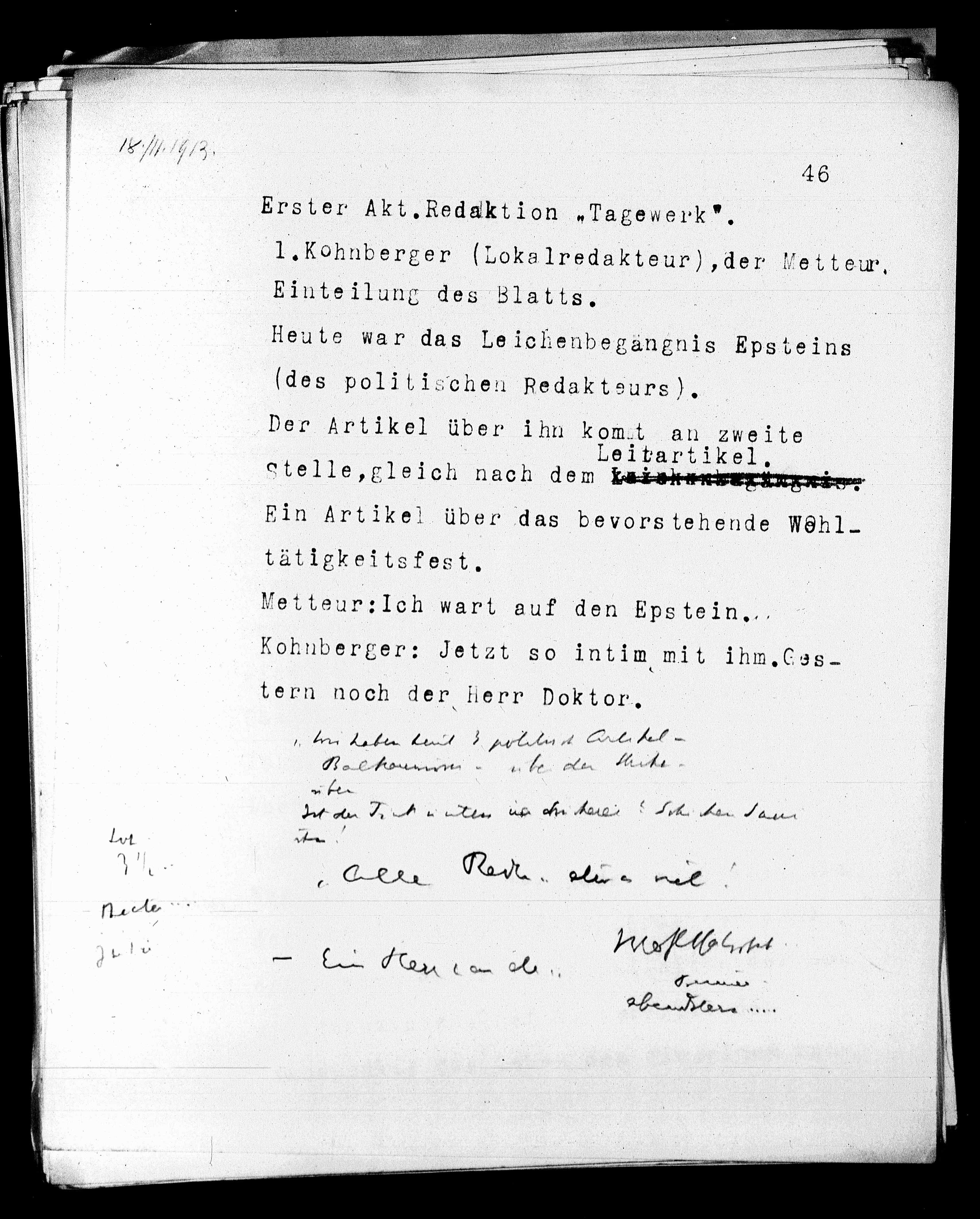 Erster Akt.Redaktion „Tagewerk“.