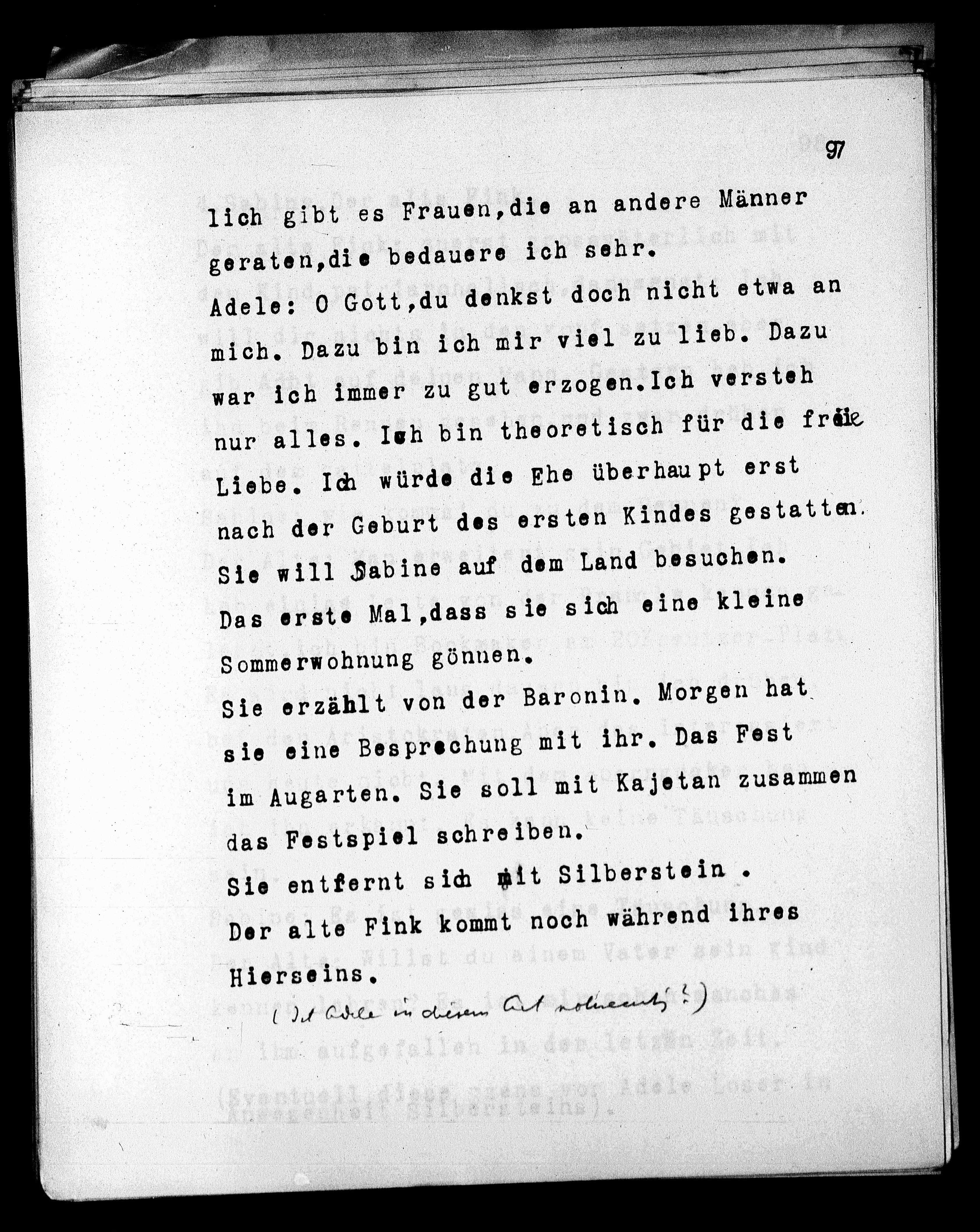 Sie erzählt von der Baronin. Morgen hat