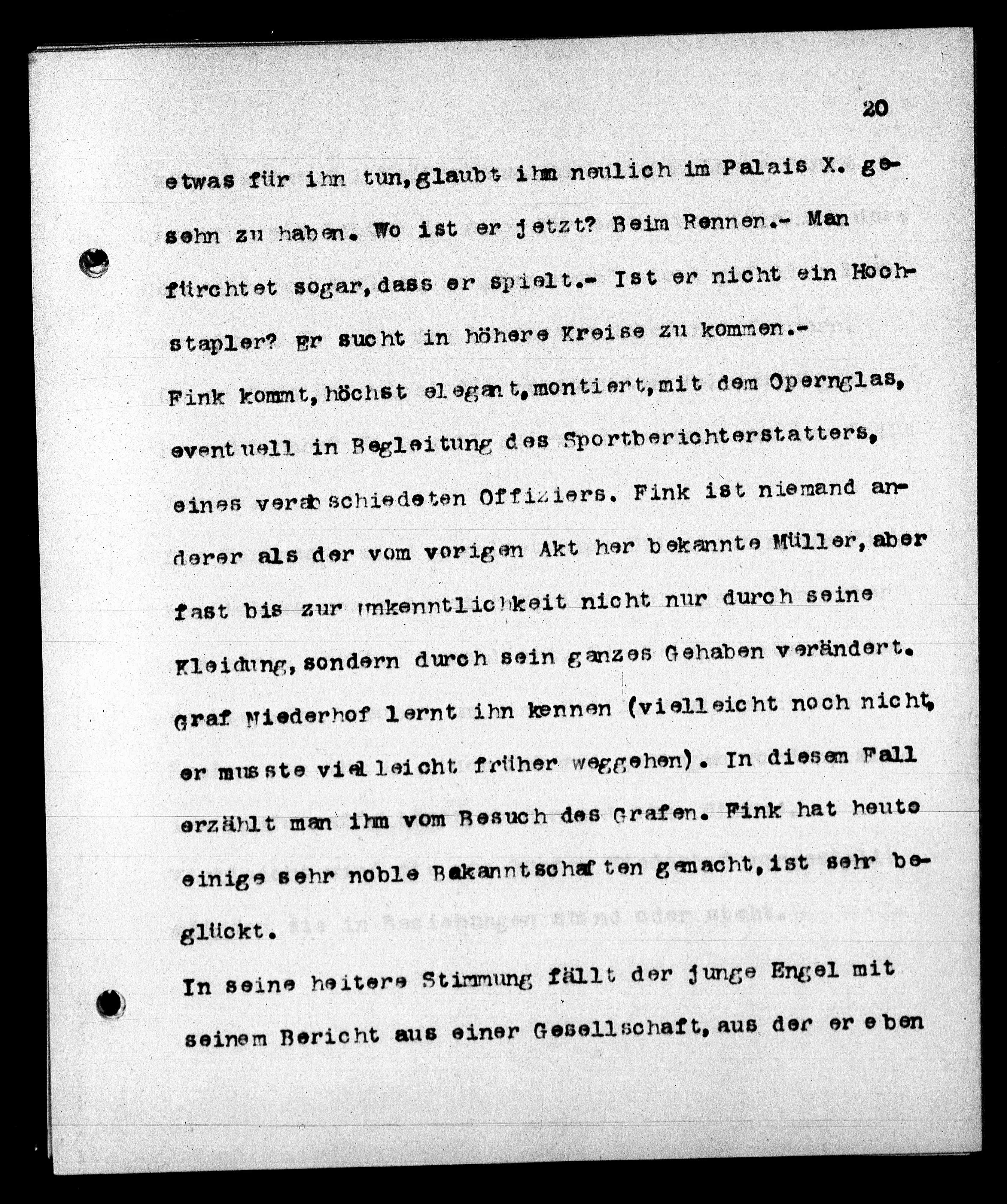 erzählt man ihm vom Besuch des Grafen. Fink hat heuto